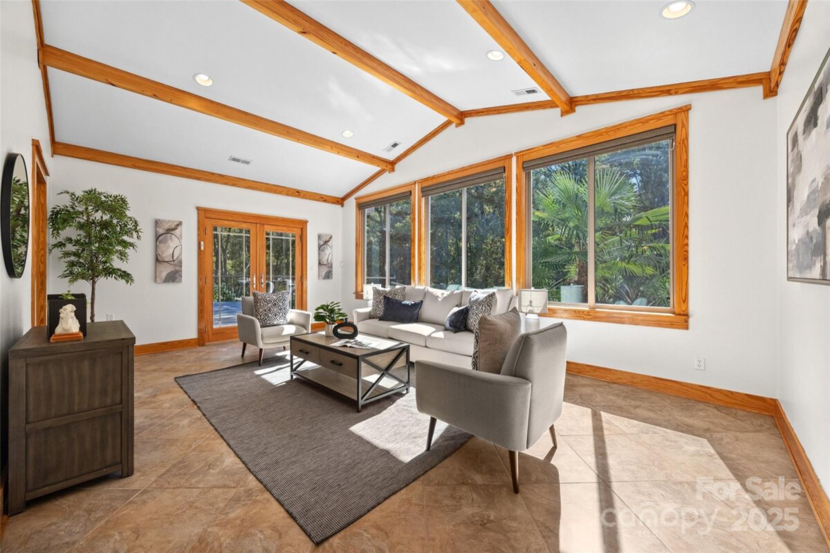 Private. Large. Luxury. Unique. Handicap Accessible. Electric Car Charging Station. Endless possibilities. Rock Hill. This custom built home by Tom Johnson will take you by surprise and yet make you feel completely at home. Tucked away in a cul-de-sac on 3 acres, this beautiful 3 bedroom, 3.5 bath home will delight you with its soaring ceilings and large stone fireplace. If you want windows to bring the outside in, there are large, premium windows galore as well as 4 sky tubes that bring the sunshine in even when the lights are not on. This home is a wonderful split bedroom plan with an upstairs bonus room with full bath and a large heated basement that make it even well-suited for multi-family living. The primary bedroom has French doors that open to the back deck and the bathroom has a walk-in shower and two separate sinks and two separate closets. The two main bathrooms have heated tile floors. The gourmet kitchen is is surrounded in solid maple cabinets, and hosts a gas cooktop with vent hood, incredible pantry storage, an industrial sized sink and it will be ready to work when you bring in fruit and vegetables from the garden area, the vineyard, the container beds and the fruit trees on the property. You will even find a small storage room in the basement for canned vegetables or wine. When you are tired from gardening, a small, salt water-chlorine generated pool, patio, deck areas and a fountain welcome you to rest and relax. Extra-special home. Don’t miss it. Other features: Oversized Two Car Garage, Water Softener on Well, Yearly Termite Inspections, HVAC under Service Plan, Front Porch, Large Yard, Tons of Storage, Natural Gas Fireplace, Convenient Location in Rock Hill, Built-in Kitchen Storage Cabinets, Custom Closets Throughout, Stamped Concrete Driveway, Ramp in Garage, Septic Pumped in 2022, New Roof in 2024.