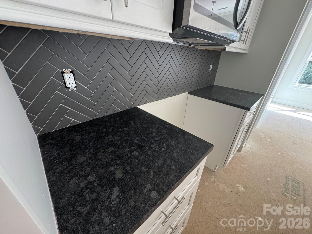 New Construction located on a 3/4 acre lot with NO HOA, and No city taxes! This split bedroom ranch home features an open floor plan with quality accents throughout which will include Leathered Granite countertops, tile backsplash with SS Appliances in the kitchen, Barn door accents, tile floor & Quartz Countertops in bathrooms. The primary ensuite bath is a focal feature with Walk in tiled shower, dual vanity, walk in closet PLUS a separate large linen & water closet. Vaulted ceilings in both primary bedroom & living room. Wall of windows along the back of the house allow for natural light but also wooded views of backyard. LVP floor throughout main living areas & primary bedroom. Carpet in secondary bedrooms. Enjoy grilling or sitting on the back deck overlooking the large backyard area. The side yard is plenty big for a shop, detached building or extra driveway space. Conveniently located just outside city limits in the County, on a quiet dead end street, just 10-15 minutes to Gastonia amenities and I85, 30 mins to CLT airport. Schedule a showing while there's still time to pick a front door color!