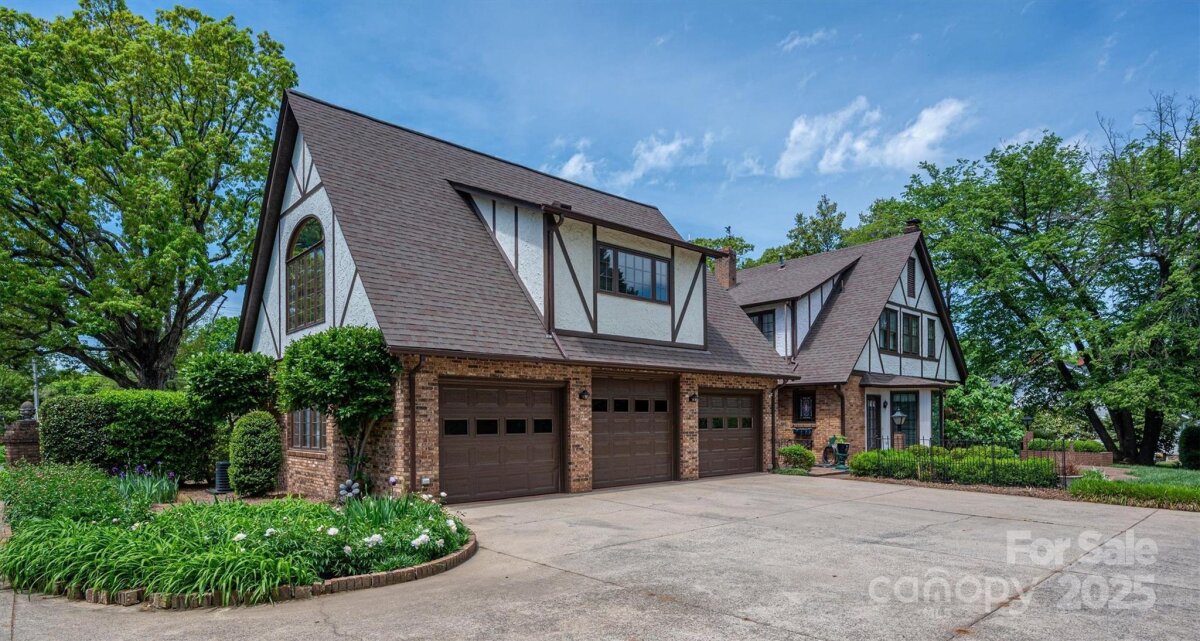 Warner-McComb 1928 English Tudor Home located in Hickory’s Claremont Historic District-just steps from Lenoir-Rhyne University, the SALT Block, City Walk, parks & downtown. The spacious Great Room boasts a stone fireplace, cathedral ceiling w/exposed beams, hardwood floors, stained glass & large windows that fill the space w/ natural light. A screened porch opens to the meticulously landscaped .87-acre yard w/seasonal gardens, a brick terrace, a vine-covered pergola—perfect for outdoor gatherings. The main level offers a guest bedroom w/full bath, a cozy study w/a fireplace, sunroom, formal dining & an updated kitchen w/granite countertops, apron sink & new appliances. Upstairs discover an artist’s retreat studio, luxurious primary suite w/a fireplace, en-suite bath & dressing room, plus 2 additional bedrooms, full bath & a convenient laundry area. A circular drive, rear parking & 3 car garage. Don't miss this rare opportunity to own a piece of Hickory’s history!