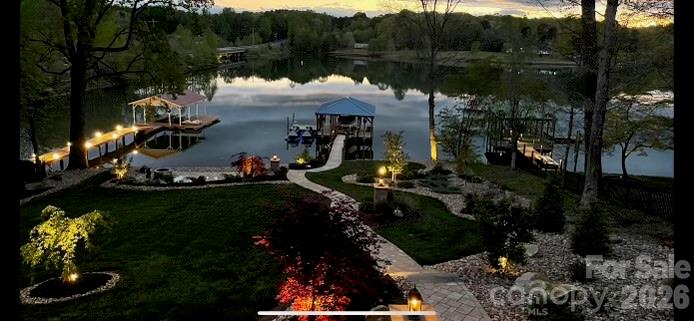 PRICED BELOW APPRAISAL – FULLY FURNISHED– TURNKEY WATERFRONT WITH DOCK + SUNSET VIEWS ON LAKE NORMAN Exceptional opportunity to secure a fully furnished, move-in ready waterfront home positioned on open water with a private dock and sunset-facing views—now offered below appraised value. Walk-out lower level offers significant expansion potential—ideal for adding living space, guest suite, or increasing overall value. Built in 2018 and significantly upgraded beyond builder standards, this property delivers the rare combination of condition, location, and immediate usability that today’s buyers are searching for. Vaulted ceilings and expansive windows frame wide lake views and fill the open-concept living space with natural light. The kitchen is designed for both everyday living and entertaining, featuring River Marble flooring, upgraded granite, and premium appliances including a Bosch dual-fuel range, warming drawer, Bosch dishwasher, and LG refrigerator. The oversized peninsula creates a seamless flow into the dining and living areas, anchored by a gas fireplace and direct access to a sunroom overlooking the water. Hickory hardwoods extend throughout the main living areas and bedrooms. The primary suite captures lake views and offers functional convenience with direct access to the laundry room. Interior finishes include crown molding, custom window treatments, and well-appointed baths with a soaking tub. Outdoor living is where this property separates itself. A maintenance-free deck with a fully equipped outdoor kitchen and electric awning overlooks the lake, while professionally designed landscaping—with over 100 tons of river rock—creates a polished, low-maintenance setting. A lighted pathway leads to a lakeside patio with fire pit and down to the private dock. The covered dock includes an 8,000 lb boat lift, sun pad, and dual jet ski ports—ideal for immediate lake use or short-term rental income potential. Additional features include a whole-home generator, 10x12 storage building, and walk-in basement with partially finished bath offering expansion potential. No HOA. Offered fully furnished for a true turnkey experience. Ideal as a full-time residence, second home, or investment property with strong rental appeal. Opportunities like this—priced below appraisal, fully furnished, and ready for immediate enjoyment—are limited on Lake Norman. Schedule your showing today.