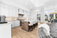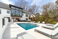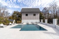 Completed in December, 2025 by BAAS Construction, architectural style blends the traditional and modern with the warmth and comfort of timeless design. This extraordinary custom-designed and built two story home includes a pool, expansive outdoor living space and a separate guest home on a .37 acre corner lot. The airy open-concept floor plan is designed for both everyday living and effortless entertaining. Soaring ceilings and expansive glass walls create a seamless connection to the outdoors. The main living space features 5 inch white oak flooring, a sleek stone fireplace and its centerpiece, the kitchen. Outfitted with custom cabinetry, an oversized waterfall island, Quartzite counter tops and professional grade appliances, the kitchen is a chef's dream. One of the many unique architectural features in the home is the cantilevered living room...feels like you are floating in space while overlooking the pool and expansive outdoor living area. Designed to be a resort-style escape, the outdoor living area includes a covered dining and kitchen area, exquisite mineral pool with tanning ledge, expansive natural stone terrace and a separate guest house. Set slightly apart for privacy, the guest house mirrors the main home's modern transitional style. Completely finished out, the home includes a kitchen, full bath, living/bedroom and a one car garage. Plus, the backyard has been fenced-in and professionally landscaped. The home is completely ready for your move in....tvs have been installed along with outdoor speakers, security system and remote driven custom blinds on the main level. Even the furnishings can be yours! Located just 3 blocks from Downtown Davidson and 7 minutes from Davidson Elementary School, this new Downtown Davidson landmark feels sophisticated yet welcoming - a seamless blend of modern architecture, warm natural materials and indoor/outdoor living designed for comfort, style and convenience.