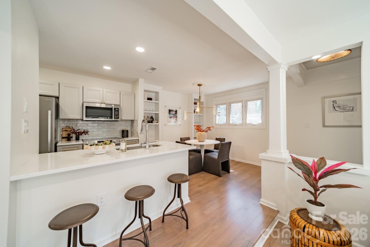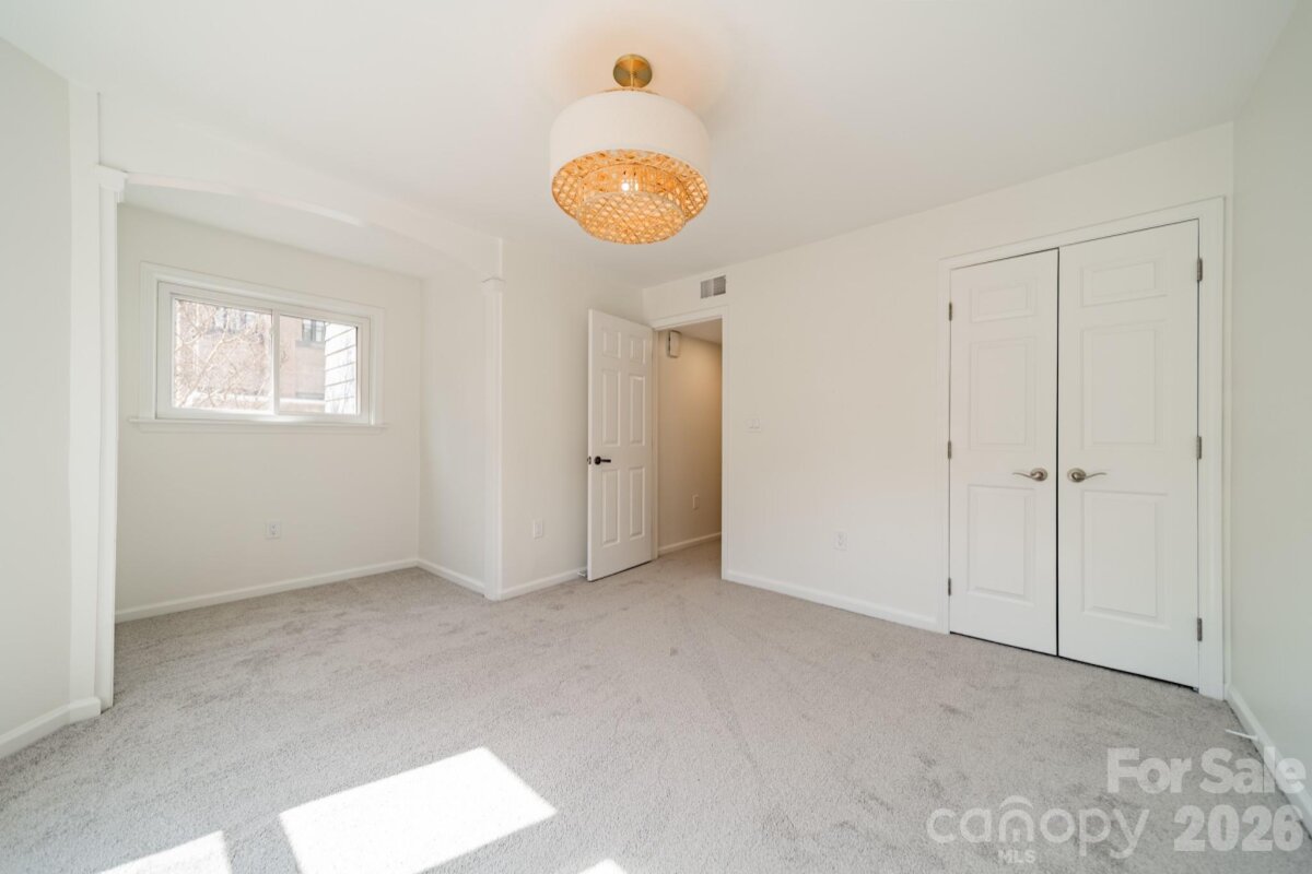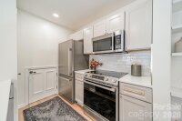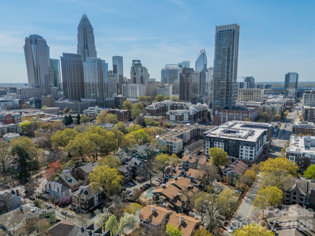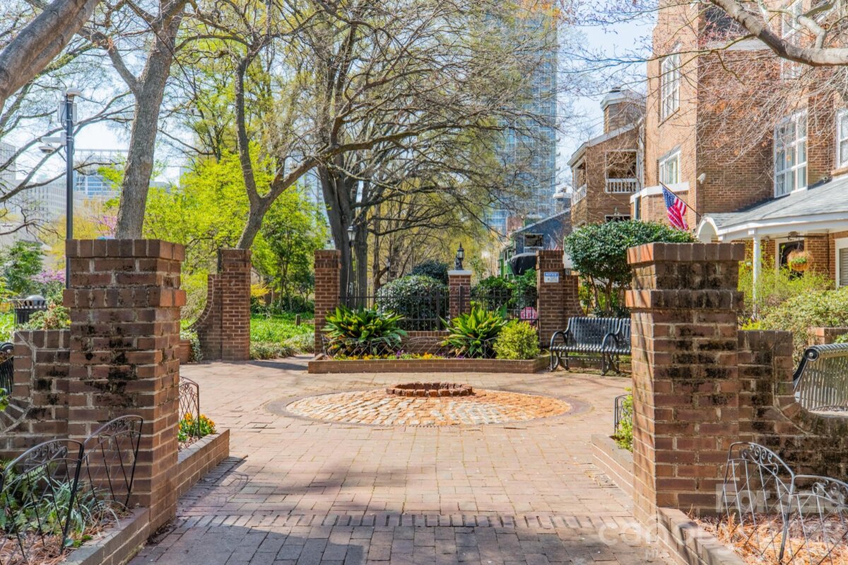 Impeccably renovated Uptown condo with professionally curated selections in the heart of the Queen City! This highly sought after end unit is a rare offering, with it's spacious primary bedroom with vaulted ceiling! Natural light fills the open floor plan, highlighting refinished wood floors, crisp, fresh paint and and thoughtful updates throughout. The kitchen stands out with Quartz countertops, new cabinetry dressed with gold hardware, stainless steel appliances, and a glazed tile backsplash. It overlooks the living area and private brick-walled patio, creating a connected, easy flow for everyday living and entertaining. Built-ins in the dining room provide both style and functionality. The primary bedroom is dreamy, with soaring ceilings and two closets, including a walk-in and a second dedicated closet that finally gives your shoe collection the space it deserves! Flawlessly executed, renovated bathroom with black and white marble floor tile, porcelain shower tile and vanity in the perfect shade of sage and gold sconces give a perfectly subtle nod to art deco design. A spacious secondary bedroom with seating area provides the flexibility of a home office, gym, or comfortable space for guests. Enjoy the courtyard with brick privacy wall and outdoor storage closet. Enjoy summer weekends in the community pool with your new neighbors. A dedicated parking space means no time spent searching for a spot and no paying for Uptown event parking - priceless! Walk to restaurants, shopping, grocery store, green spaces and all of Charlotte’s sports and entertainment! Easy highway access makes getting out of town a breeze! Welcome Home!