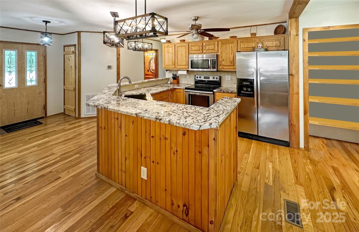 One Level Living along stream at Kirby Mountain w/possible building site up the mountain for stunning views. This property offers lots of land with endless possibilities. The home was built in 2011 and offers space to add on additional square footage. You can live in this beautiful home by the stream while you build your dream home up the mountain for stunning views. Home Details: Rocking Chair Front Porch, Dining Area, Kitchen w/beautiful granite countertop & pantry, Primary suite with Tile shower & soaking tub, 2nd bedroom/split bedroom floor plan for privacy, 2nd Full Bath with Tile Shower, Living Room w/wood stove for additional heat, Laundry Room w/storage, unfinished Mudroom w/1/2 bath offers storage space & interior/exterior access. Water heater: electric water heater currently in use. Additional Rinnai Instant Water Heater installed in mudroom has not been hooked up to propane. Parking/Storage/Picnic Area: 2 car detached carport, detached metal garage w/interior lighting & high ceiling is suitable for RV storage, tractor shed on side of garage, storage shed, Covered picnic area, spacious driveway. Property: approx. 8.31 acres (3 parcels) with creek. Access to possible building site up the mountain: Path and building site have grown up so proper hiking clothing and shoes required to walk the land up the mountain. See floodplain map attached in photos. Part of property at creek is in a 100 year floodplain. Listing is three parcel totaling approx 8.31 acres- plat and GIS acreage differ slightly. Half-bath/mud room/storage is unfinished space/not included in total heated square footage. 3 parcels-10-2W134-1C ,10 2W134-1, 10 2W134 2C (see Caldwell County GIS mapping. Make your appointment today to view this beautiful home and mountain property.