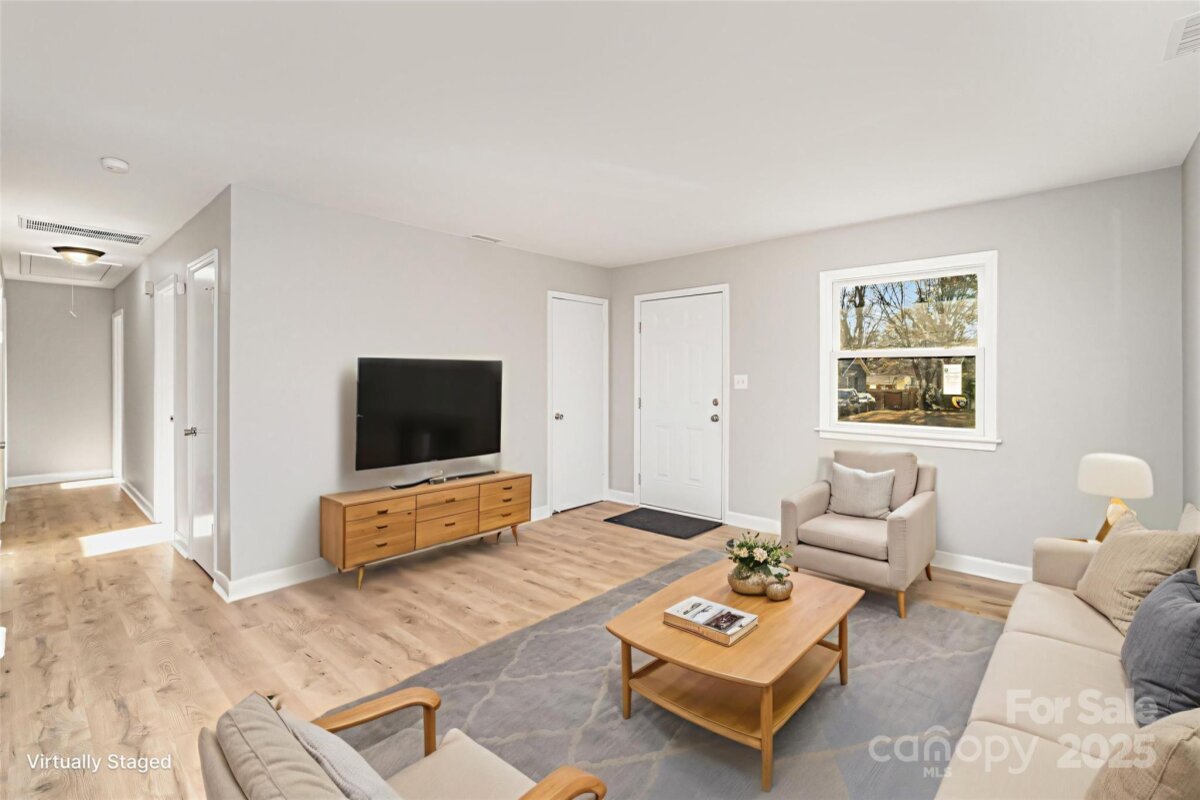 Beautifully renovated 3-bedroom ranch in Windsor Park! This move-in-ready home is just minutes from the dining, shopping, and entertainment of Plaza Midwood and NoDa. Updated in 2025, it features fresh interior paint, new laminate flooring, updated windows, and a fully refreshed kitchen with new cabinets, countertops, and stainless steel appliances. The bathroom has been modernized with clean, updated finishes. Major improvements include a new roof, gutters, HVAC, sealed crawl space vents, and a dehumidifier system for added comfort. Enjoy the spacious backyard with a new fire pit, perfect for outdoor entertaining. This home blends style, convenience, and value in a popular Charlotte neighborhood.