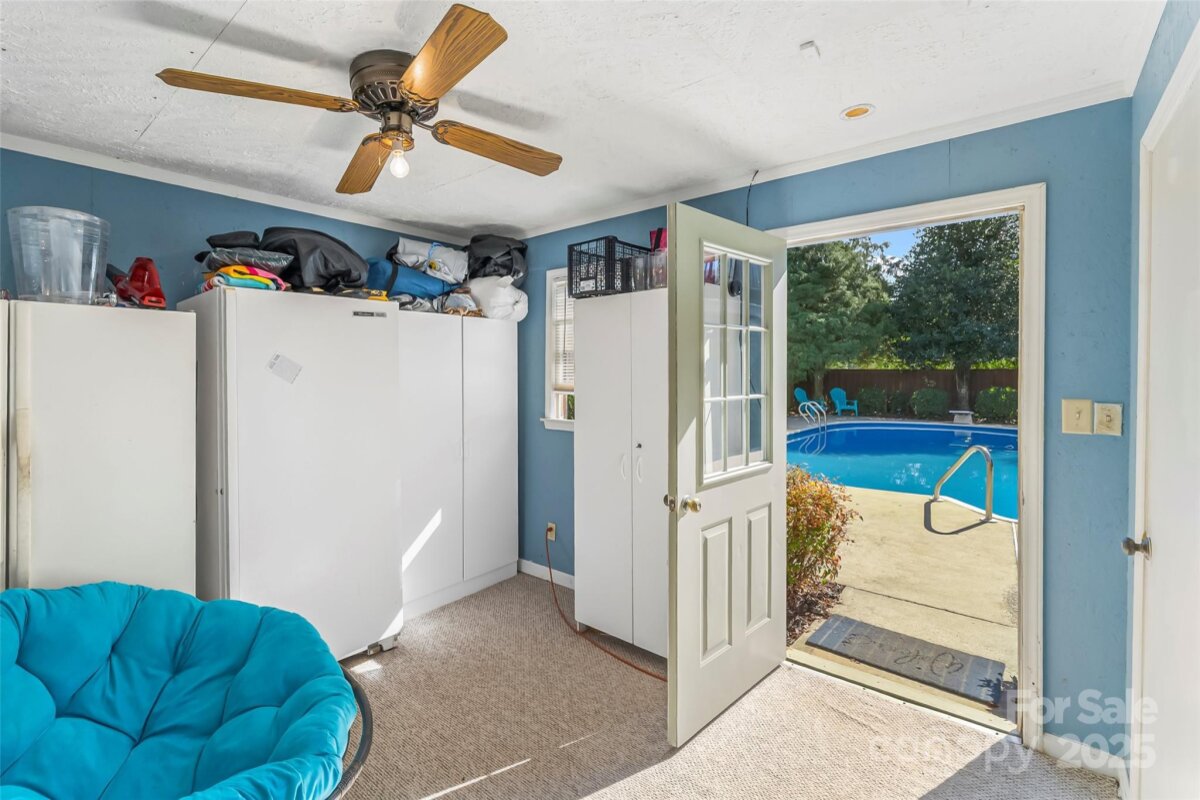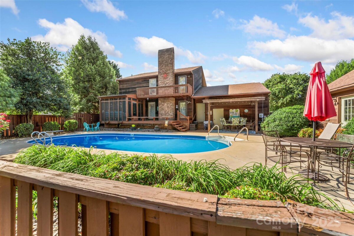Welcome to your dream home! This spacious 3-bedroom, 2.5-bathroom home, featuring an additional main-floor bonus room converted into a 4th bedroom, offers 2,762 sq ft of comfortable living space. Nestled on 1.17 acres of flat, picturesque land that gently slopes down to a peaceful creek, this beautifully maintained property offers the perfect blend of comfort, space, and functionality. Upstairs, you'll find generously sized bedrooms, including a primary suite featuring a gas log fireplace, a huge walk-in closet, a double-sink vanity, and private walkout access to a second-story deck overlooking the pool. The main floor is designed for both entertaining and everyday living with heart of pine hardwood floors throughout the home, a formal sitting area, a living room with cozy gas logs, a dedicated dining room, and an expansive kitchen with beadboard ceilings. Exit outside and enjoy the large screened-in porch – beautifully furnished and included with the home – ideal for morning coffee or evening gatherings. Your private backyard oasis features a low-maintenance eco-smart pool, a charming gazebo, and a carpeted pool house, along with a fully finished she shed — together totaling over 330 sq ft of versatile space for guests, hobbies, or extra living quarters. For even more versatility, the she shed includes a built-in loft, perfect as a playhouse, guest quarters, creative studio, or potential second living space. Located just minutes from downtown Morganton, I-40, and Lake James, this property offers peaceful living with unmatched convenience. Don’t miss your chance to own this one-of-a-kind property with space, style, and so much more!