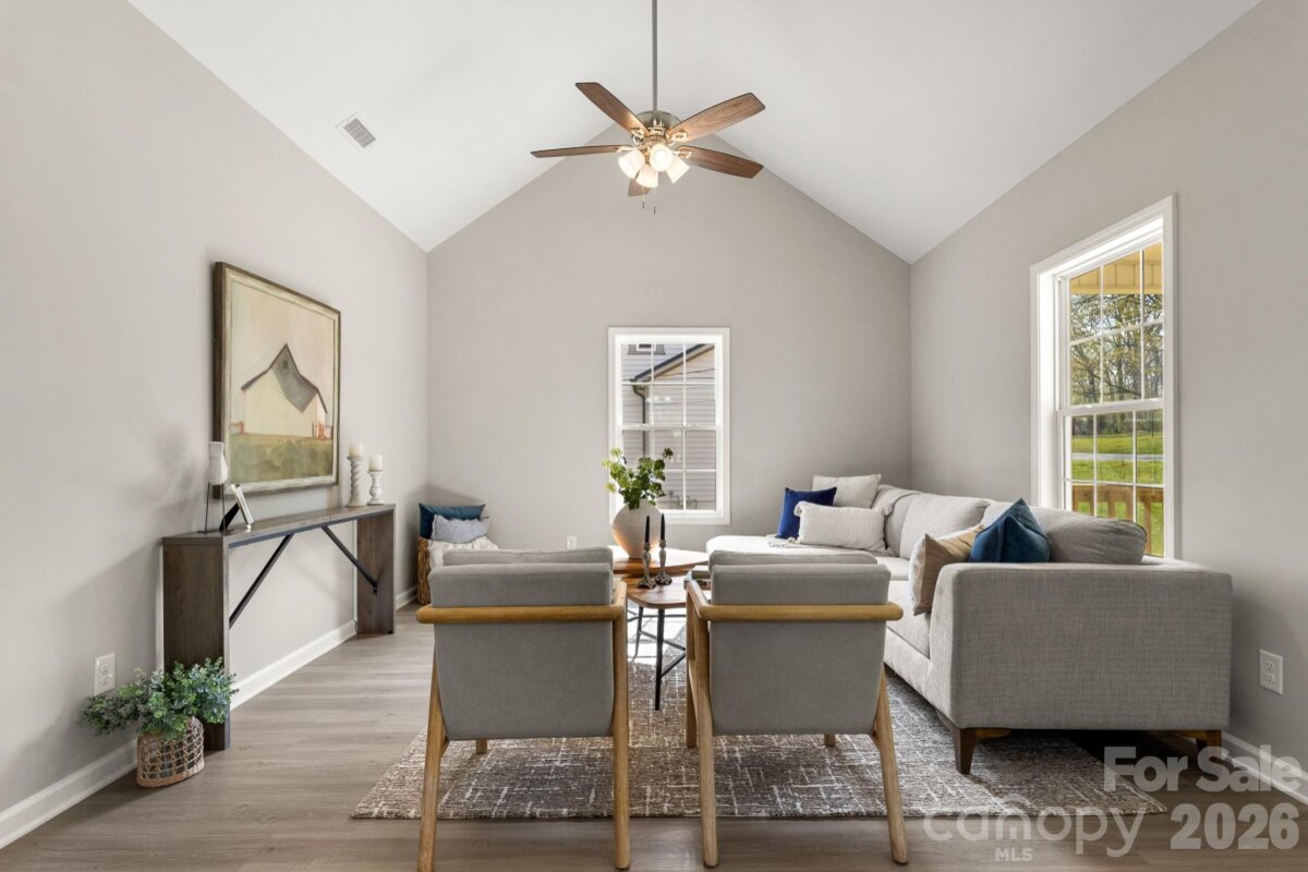 COMPLETED New Construction ready for you to make it your Home! The Charlotte is a cute 3 bed, 2 bath plan with features you will love! Enjoy your morning coffee or an evening sunset on the BIG covered front porch! From there, walk into the home onto NEW LVP Flooring throughout the entire home! Entertain easily in your spacious Great Room and Dining Area featuring a butler's cut-out into the kitchen and vaulted ceilings for that extra open feel! Kitchen is STUNNING with tons of counter space, white cabinets, granite countertops, and SS Dishwasher, Range, and Microwave! The Primary Suite offers a spacious room, modern ceiling fan, and full bathroom w/dual granite vanity & tub/shower combo. Both guest bedrooms are good sizes and share the additional full bathroom w/single granite vanity & tub/shower combo. GREAT price for this New Construction home and all it has to offer, come see it today!