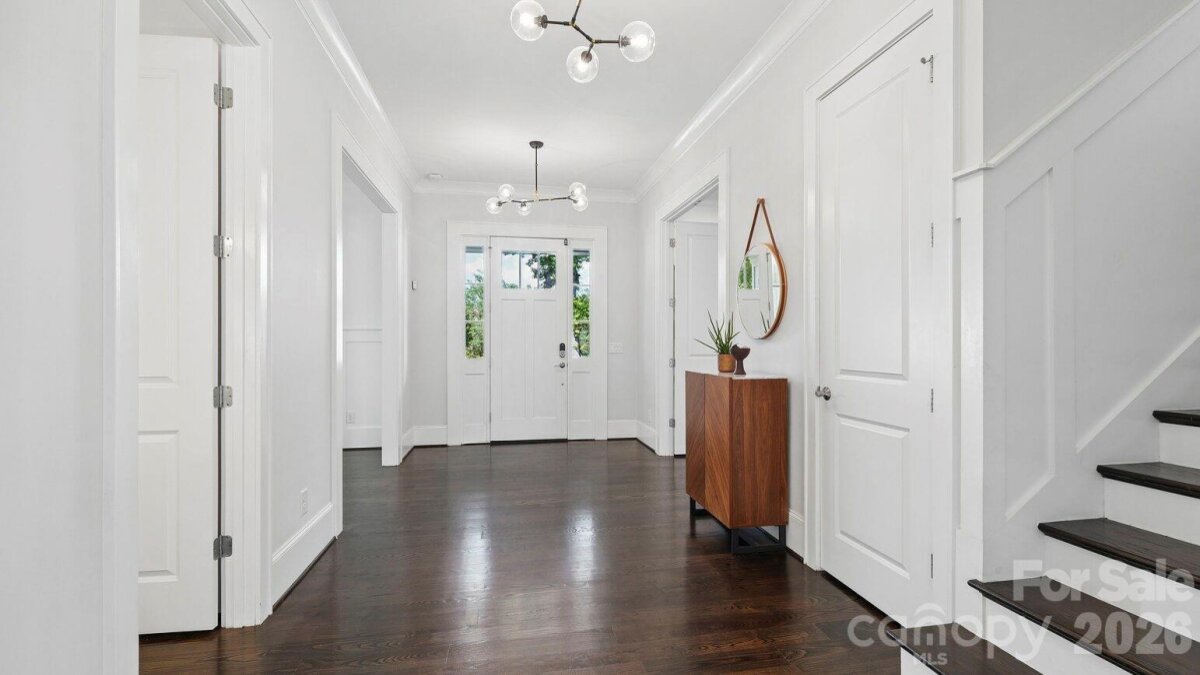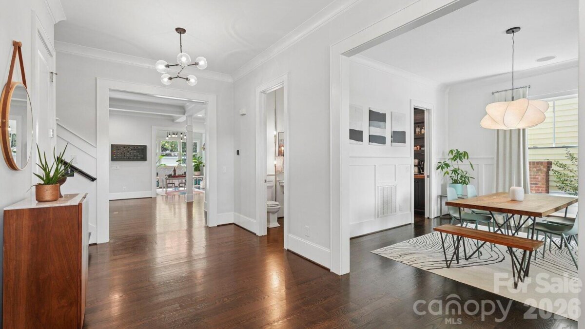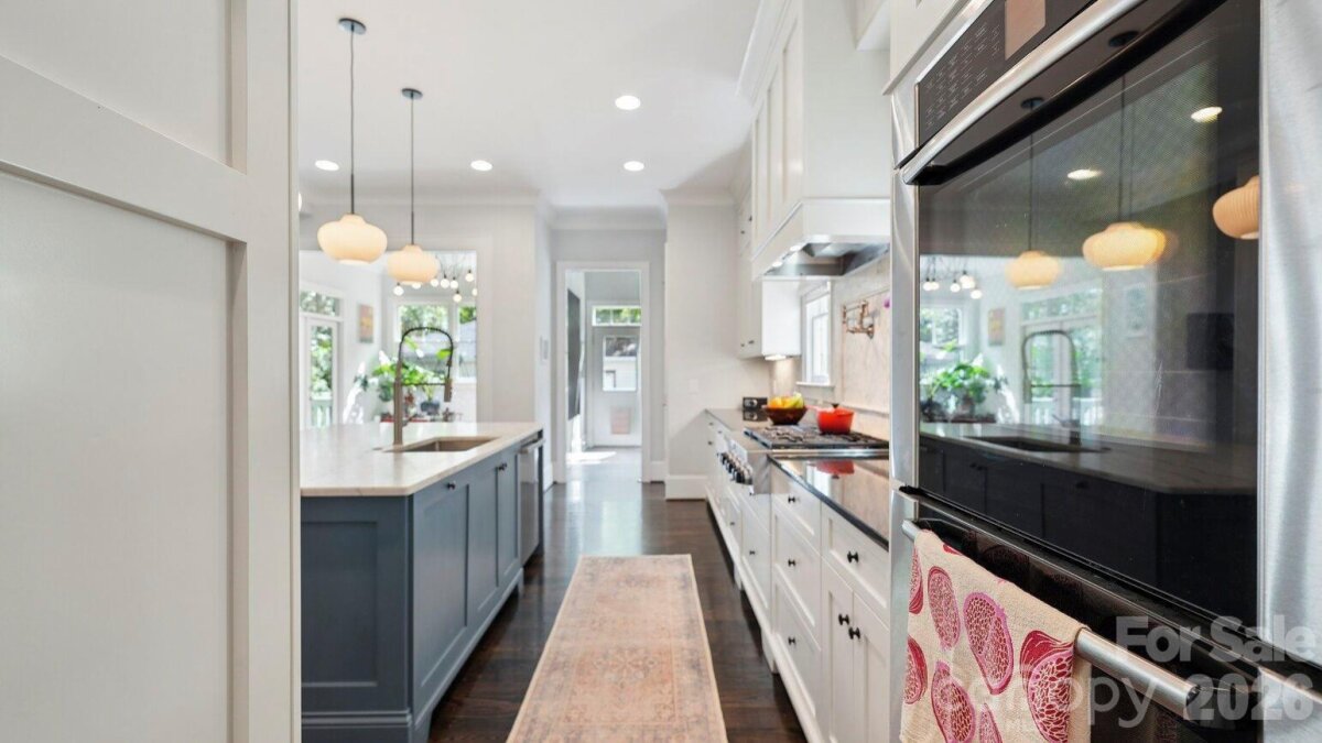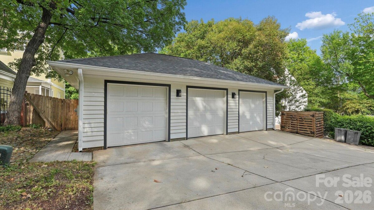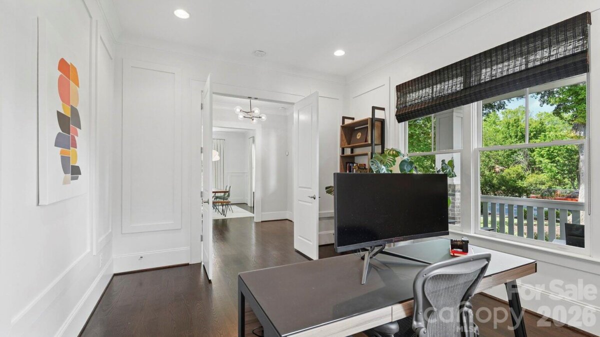 Live in the heart of historic Dilworth on tree-lined Park Avenue. Built in 2014, this home perfectly blends classic charm with modern convenience, including a rare heated & cooled 3-car garage. Guests are greeted by a welcoming rocking-chair front porch that spans the width of the house. Inside, a grand foyer opens to a dedicated home office (with flexibility as a main-level bedroom) and a formal dining room. A scullery/wet bar connects seamlessly to the well-appointed kitchen, featuring ceiling-height cabinetry for maximum storage, a 6-burner gas cooktop, double ovens, and a spacious island. The adjacent sunroom/breakfast is filled with natural light, while the living room offers a coffered ceiling, fireplace, built-ins, and access to a covered back porch, ideal for entertaining or relaxing. Upstairs, a cozy landing with a built-in daybed creates a perfect retreat. The second floor includes four bedrooms and three full baths, with a functional layout featuring a Jack-and-Jill bath and additional en-suite. The primary suite is privately positioned at the rear of the home, complete with a tray ceiling, dual vanity, soaking tub, separate shower, and an expansive custom walk-in closet, plus an additional closet. Laundry is conveniently located just outside the bedrooms. Designed for everyday ease, a drop zone/back foyer leads to the backyard with planting beds and a path to the standout three-car garage. It's temperature controlled, equipped with built-ins and a utility sink, a car charger and alley access with extra driveway parking. All of this in an A+ Dilworth location, just a short stroll to the dining, shopping, and the energy of booming South End. Welcome home!