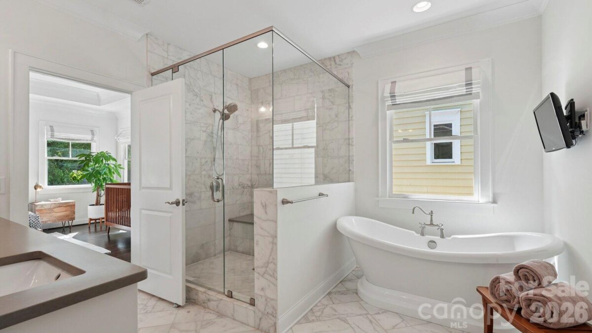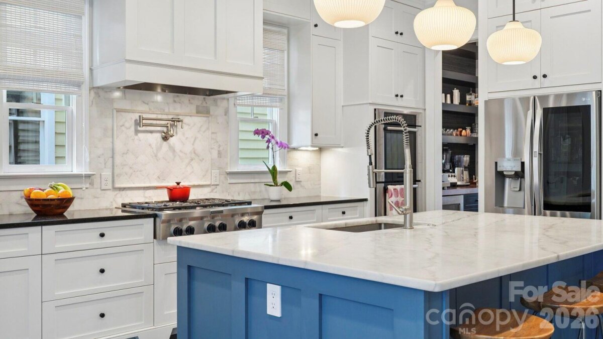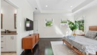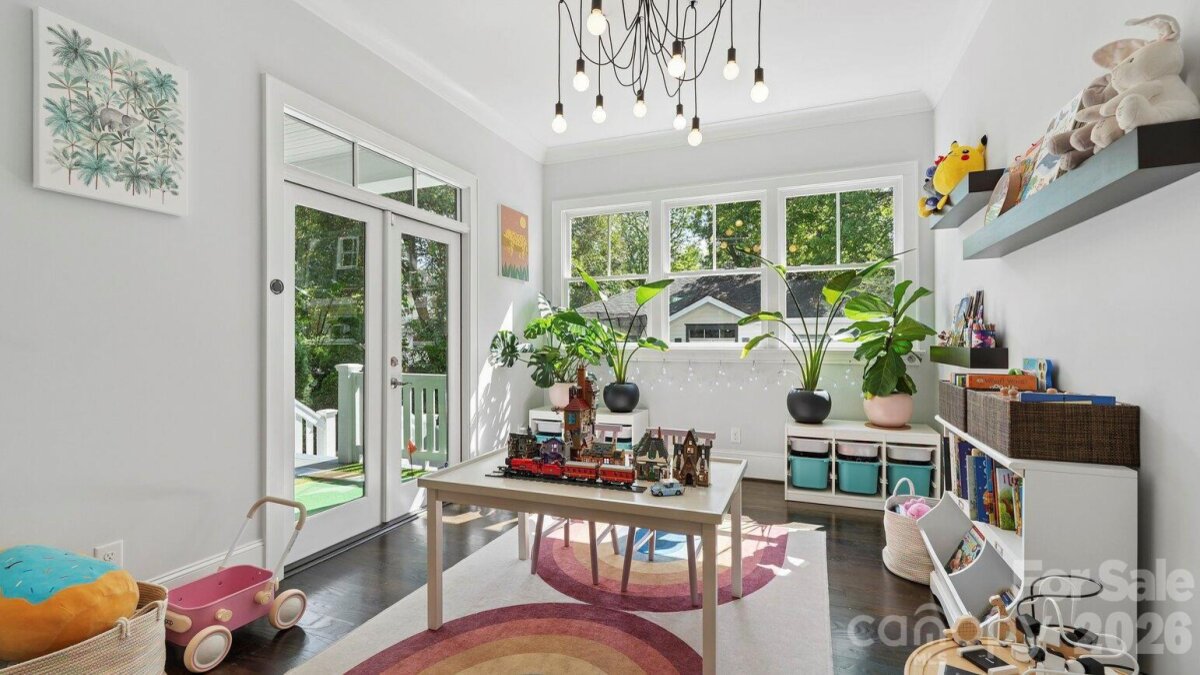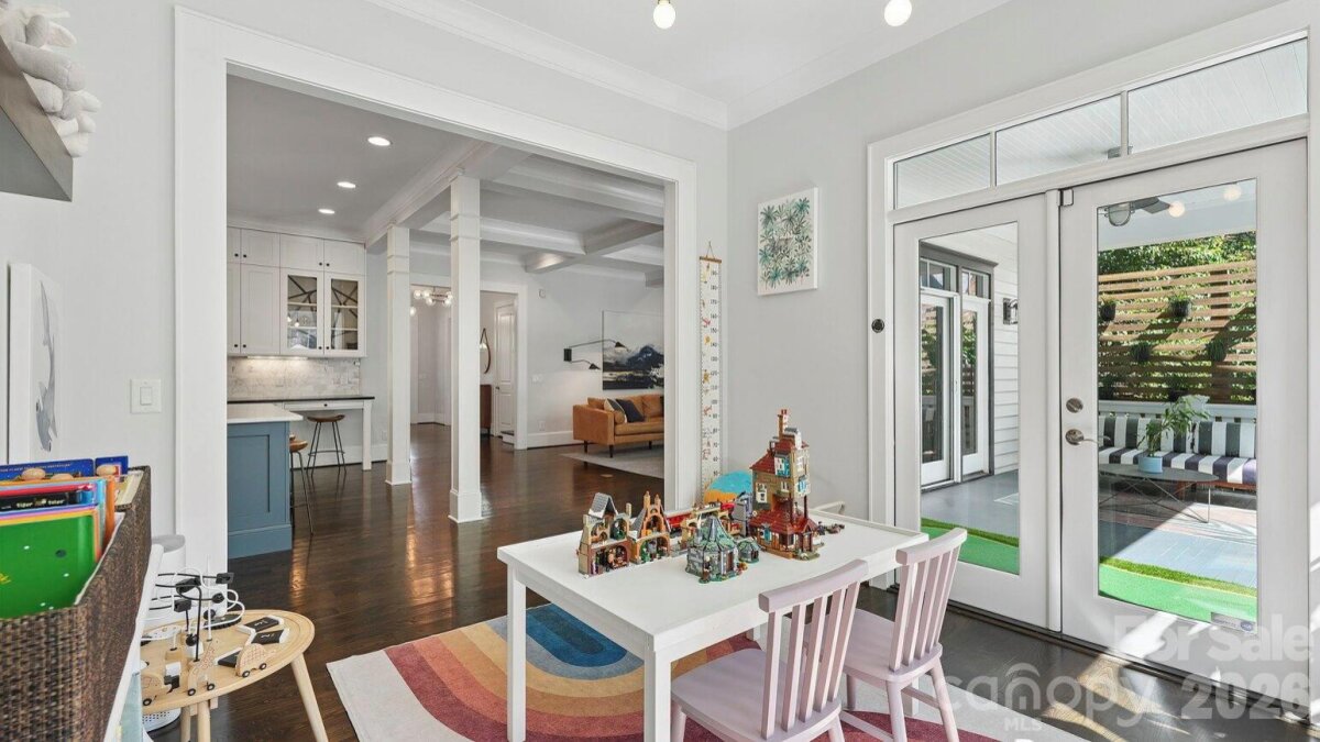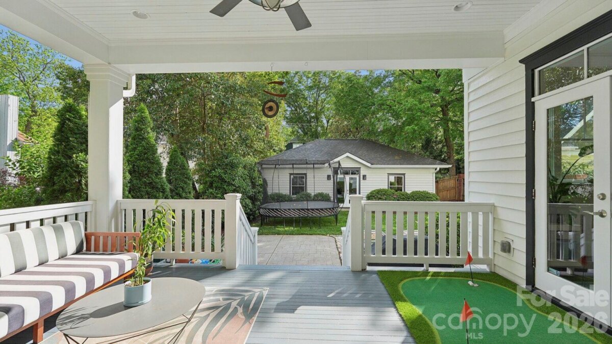 Live in the heart of historic Dilworth on tree-lined Park Avenue. Built in 2014, this home perfectly blends classic charm with modern convenience, including a rare heated & cooled 3-car garage. Guests are greeted by a welcoming rocking-chair front porch that spans the width of the house. Inside, a grand foyer opens to a dedicated home office (with flexibility as a main-level bedroom) and a formal dining room. A scullery/wet bar connects seamlessly to the well-appointed kitchen, featuring ceiling-height cabinetry for maximum storage, a 6-burner gas cooktop, double ovens, and a spacious island. The adjacent sunroom/breakfast is filled with natural light, while the living room offers a coffered ceiling, fireplace, built-ins, and access to a covered back porch, ideal for entertaining or relaxing. Upstairs, a cozy landing with a built-in daybed creates a perfect retreat. The second floor includes four bedrooms and three full baths, with a functional layout featuring a Jack-and-Jill bath and additional en-suite. The primary suite is privately positioned at the rear of the home, complete with a tray ceiling, dual vanity, soaking tub, separate shower, and an expansive custom walk-in closet, plus an additional closet. Laundry is conveniently located just outside the bedrooms. Designed for everyday ease, a drop zone/back foyer leads to the backyard with planting beds and a path to the standout three-car garage. It's temperature controlled, equipped with built-ins and a utility sink, a car charger and alley access with extra driveway parking. All of this in an A+ Dilworth location, just a short stroll to the dining, shopping, and the energy of booming South End. Welcome home!