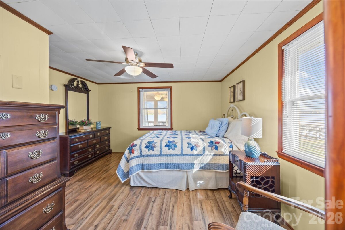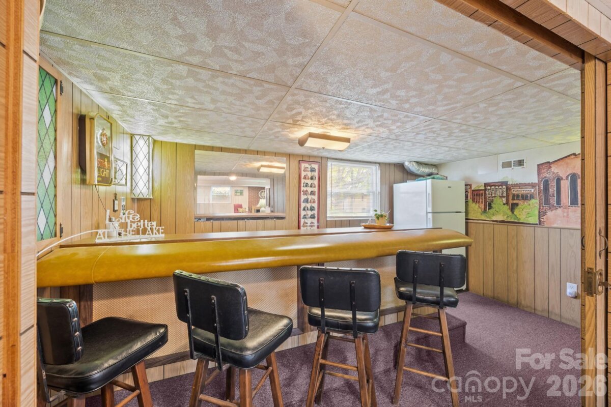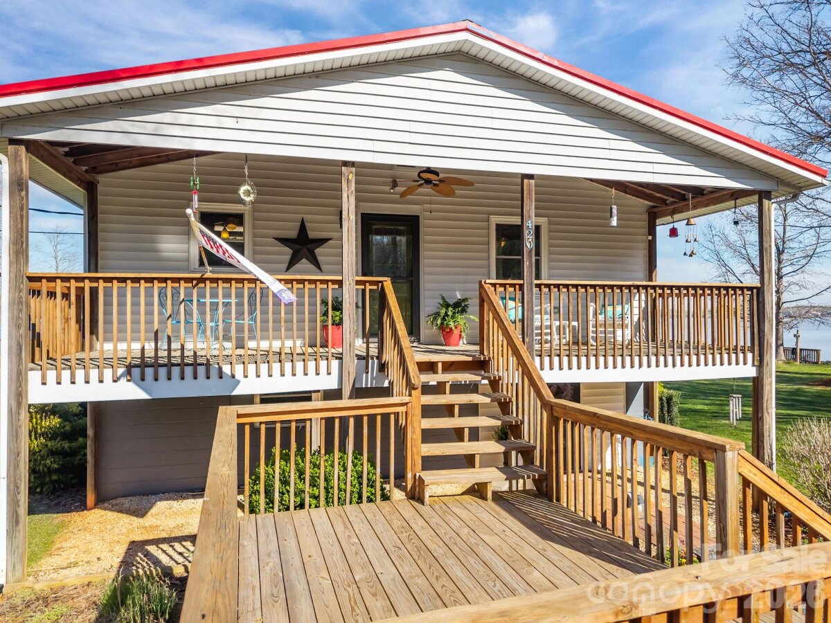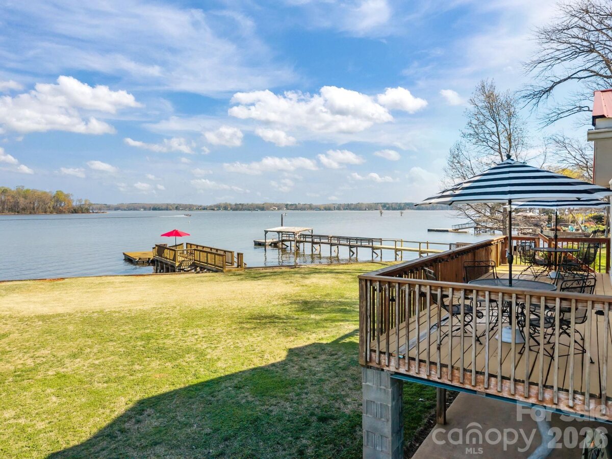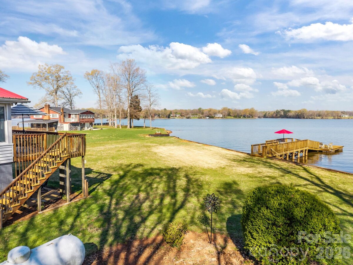 Welcome to your lakeside retreat on High Rock Lake, where breathtaking water views and effortless living come together in perfect harmony. This charming 2-bedroom, 1-bath home offers the ideal escape. From the inviting rocking chair front porch, step inside to a spacious and open layout featuring a well-appointed kitchen, dining area, and a warm, welcoming living room anchored by a cozy gas log fireplace. Designed with relaxation in mind, the fully enclosed back porch provides the perfect setting to unwind year-round while soaking in the stunning lake views. The lower level expands your living space with a versatile bonus area, laundry room, ample storage, and an additional half bath (lower level ceiling height is 6'7" and fails to meet the minimum height for HLA of 7'0"). Outdoors, enjoy direct access to the water with your private pier and floating dock—perfect for boating, fishing, or simply embracing the peaceful lake lifestyle. The property includes two lots totaling approximately 0.48 acres, providing added space and privacy. Thoughtfully updated, this home features new flooring, new windows, added insulation, exterior paint, a gas furnace (2020), and a reconditioned metal roof (2025), along with a newly built pier and floating dock. Most furnishings will remain, making this a truly move-in-ready opportunity. Timeless, inviting, and rich with potential—this High Rock Lake gem is ready to be enjoyed from day one.