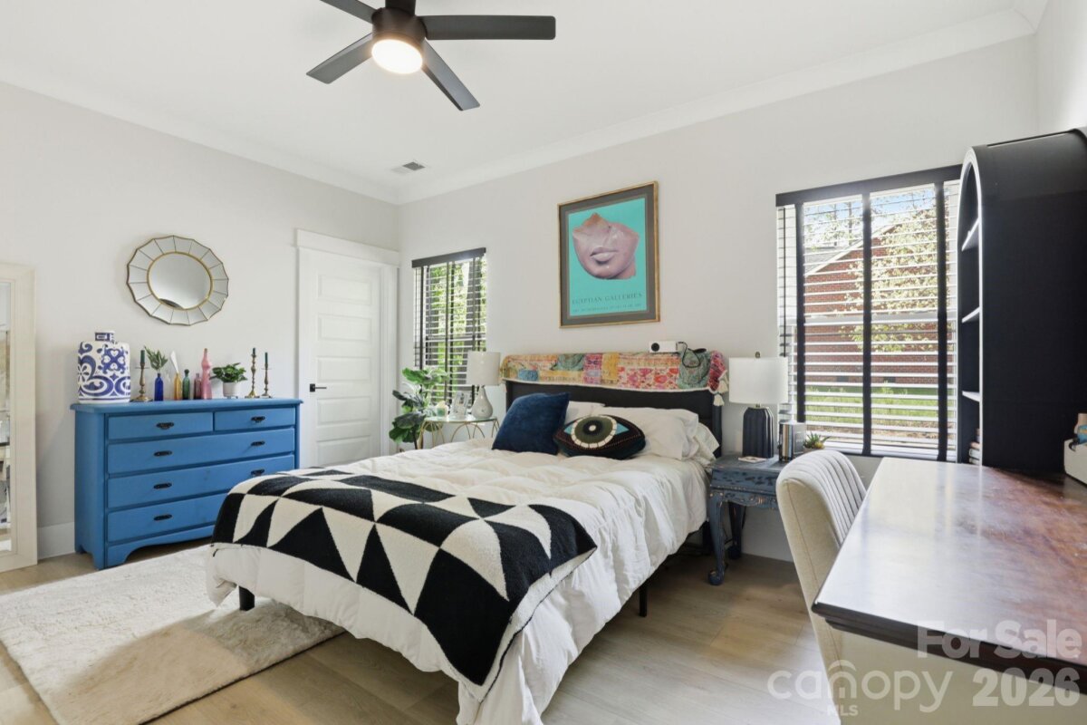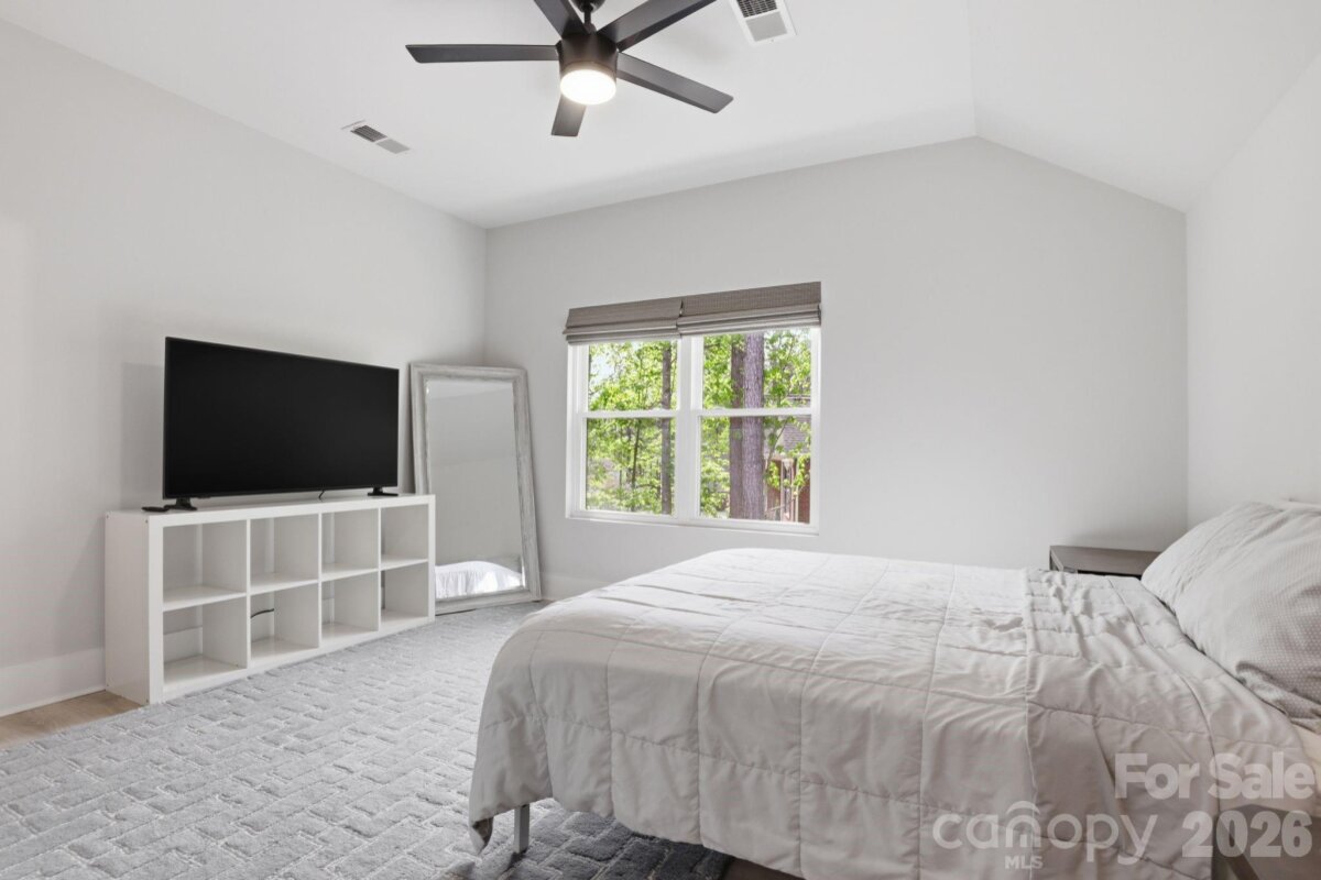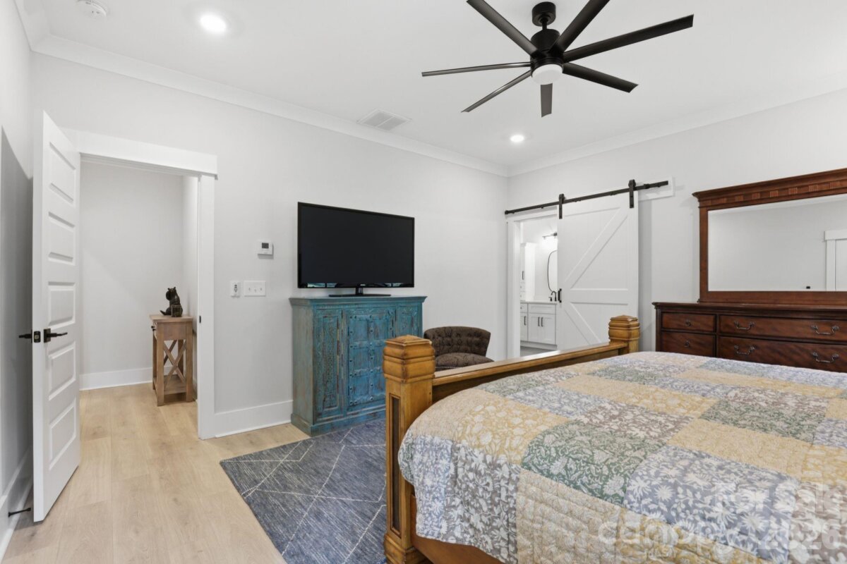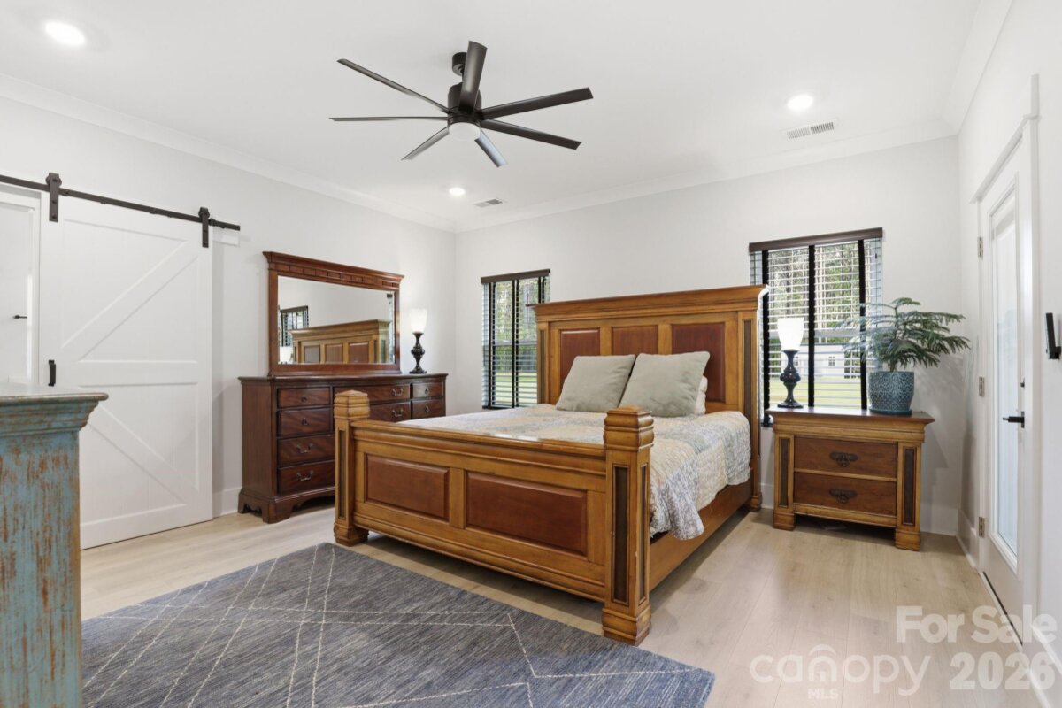 Welcome to this stunning, modern farmhouse-style 1.5-story home where charm, space, and serene water views come together beautifully. Nestled on over an acre, this thoughtfully designed 4-bedroom, 3.5-bath home offers the perfect blend of modern comfort and timeless appeal. Enjoy your morning coffee on the covered front porch with peaceful water views, or unwind in tranquil settings on the covered back deck. Inside, this spacious home features an open-concept floor plan ideal for both everyday living and entertaining. The inviting living area showcases an electric fireplace, while the kitchen is sure to impress with a large island, quartz countertops, a brick backsplash, soft-close cabinetry, abundant cabinet space, and a well-appointed scullery for added prep space and storage. The main-level primary suite is a true retreat, offering a generously sized bedroom, a spa like bathroom, and direct access to the covered back deck perfect for relaxing in privacy. Also on the main level are two secondary bedrooms with a shared full bathroom, ideal for family or guests. Upstairs, you’ll find a private guest bedroom complete with its own full bathroom and walk-in attic storage perfect for visitors, or additional flex space. Every bedroom in the home features a walk-in closet, providing ample storage and functionality throughout. The home features durable luxury laminate flooring throughout the main living areas and beautifully tiled bathrooms, combining style with low-maintenance living. Water views can also be enjoyed from the front bedroom, adding to the home’s charm. Located just minutes from the state park, this property offers the ideal blend of privacy and convenience. A 2-car garage, potential for car lift with the sorrowing 15ft ceiling and expansive lot provide ample room for storage, outdoor living, and future possibilities. If you’ve been searching for a beautifully maintained, one-owner farmhouse-style home with space, style, and scenic views—this one checks all the boxes.