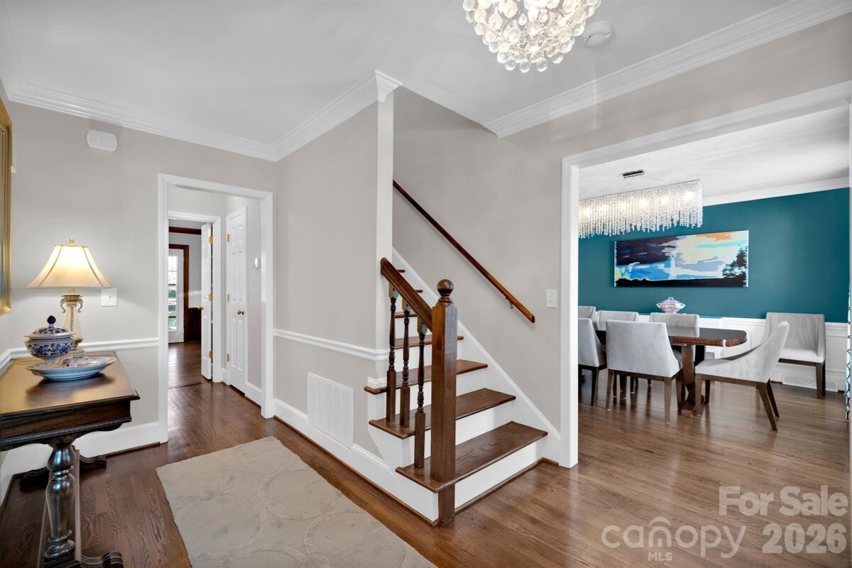 Welcome Home to your private oasis in the heart of Charlotte! This home has all the features you are looking for and more including an impressive garage set up for the car enthusiast in your life. Renovated kitchen with double oven and gas range. HUGE living room perfect for entertaining and a very spacious dining room. There are gorgeous hardwood floors throughout the main level and partially upstairs. Everything in this home has been meticioulsly maintained. The cozy den with gas fireplace, built-in bookcases and window seat opens to the kitchen, foyer and screened in porch. The generous screened in porch and deck are prefect for enjoying the stunning backyard. Upstairs you will find an oversized primary suite with his/hers vanity bathroom with personal linen closet and walk-in closet. Off the closet is 250+ sf of walk-in attic with skylight that can be transformed into a home gym, office, additional closet space, or keep it as storage! So many possibilities. The 3 secondary bedrooms are all generous in size with 2 having large walk-in closets and the other having 2 separate closets. The hall bath has been updated with stylish tile and has dual vanities and a linen closet. The upstairs landing has pull down attic access and yet another large linen closet- storage for days! The attached garage is two stories tall with ceiling fan and wall AC unit. There is a large utility sink, exhaust vent and plenty of garage storage. There is full height, walk in double door access to additional crawlspace storage. Also in the garage you will see a car lift. The lift is not attached and does not remain with the sale but is available for purchase outside of closing. Reach out for details on the lift. There is also an oversized detached double garage and is so big that it currently houses 3 cars with 2 small cars parked in tandem. The sellers also have architectural plans to add a second story/apartment above the existing space. BOTH garages are plumbed for hot/cold water and compressed air. In addition, the attached garaged includes a natural gas connection. The outdoors are stunning and a gardener's dream. The natural and garden areas have been well maintained and when in full foliage you are in completely tucked in to your oasis. There is a fire pit for relaxing outside with a stockpile of wood that will last for years to come. The wrap around driveway works perfectly when entertaining but also allows you to tuck your trailers, campers, etc around the back side of the house. The home also comes with a backup generator that can supply the bedrooms, kitchen and water heater with electricity. Both refrigerators remain- kitchen and garage. Also remaining are the attached TVs in the kitchen and front guest room remain (both can be removed upon request), the washer and dryer, kitchen bar stools, all windows treatments, fireplace screen, the outside fountain and jasmine orb fixture by screened in porch, party lights outside, fire pit and wood, both garage wall vacuums, hose reels and air compressors. This home is stunning inside and out. You won't be disappointed. Every detail has been thoughtfully maintained. See website link for additional photos: https://listings.visionrealestatemedia.com/421-Sardis-Ln-Charlotte-NC-28270-USA?mls=4363122