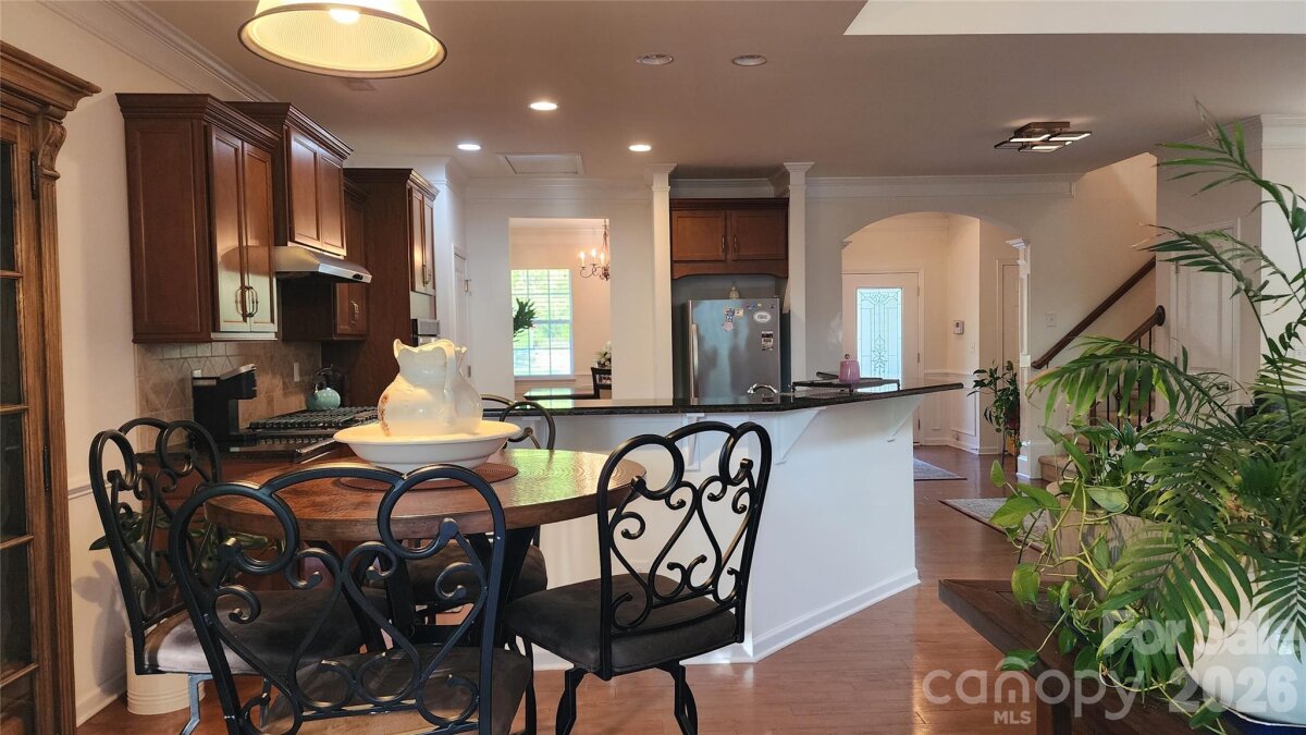 Welcome home! This beautifully maintained custom-built home features four bedrooms and three bathrooms, with the master suite conveniently located on the main floor. The open gourmet kitchen seamlessly connects to the great room, making it ideal for entertaining while cooking or serving guests if desired. This home combines elegance with functionality and offers a perfect balance of comfort and style. You will enjoy spacious living areas filled with natural light and a thoughtfully designed layout that suits both everyday living and hosting gatherings. The backyard serves as a peaceful retreat, complete with an outdoor kitchen—perfect for quiet evenings or getting together with others. Situated in a highly sought-after Charlotte neighborhood, this home is conveniently close to shopping, dining, I-485, Charlotte International Airport, and more, all while providing a sense of privacy and tranquility. The neighborhood has access to the lake which is a part of the HOA. There is a pathway down to the water. A new roof completed 3/13/2026 and gutters will be added Schedule your showing today!