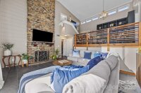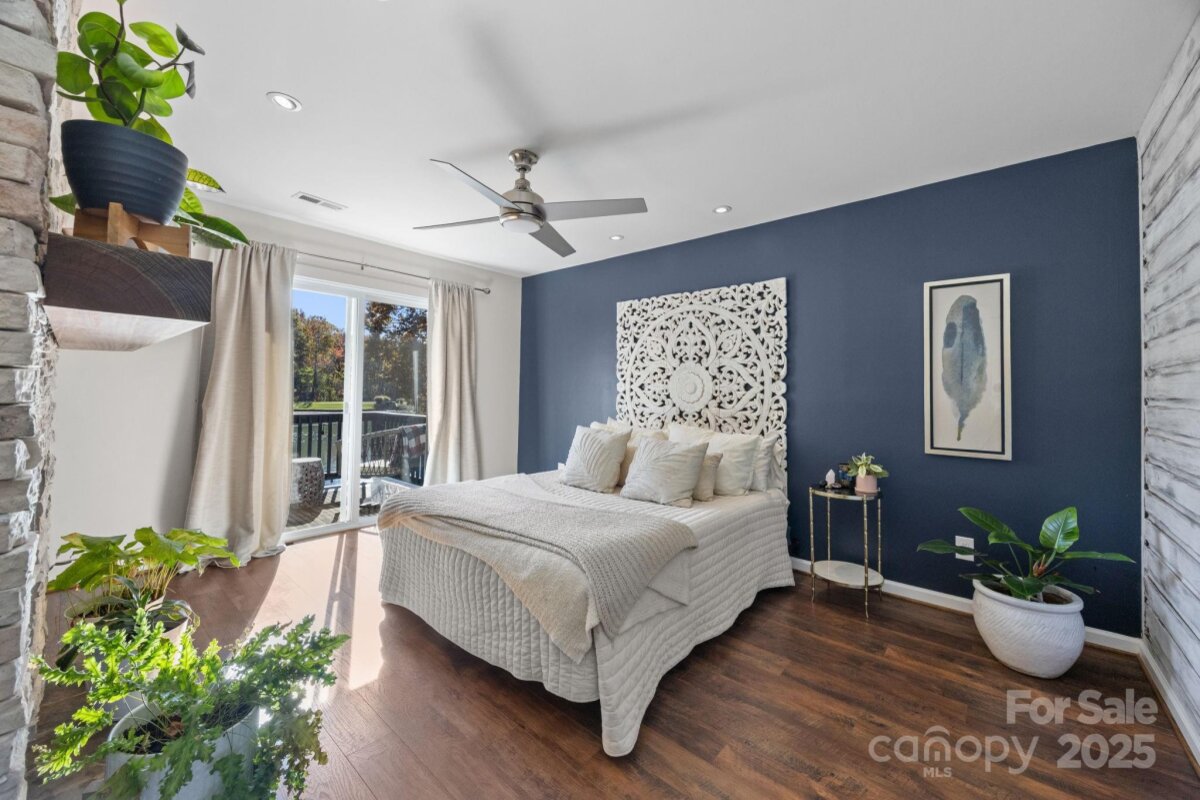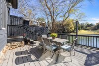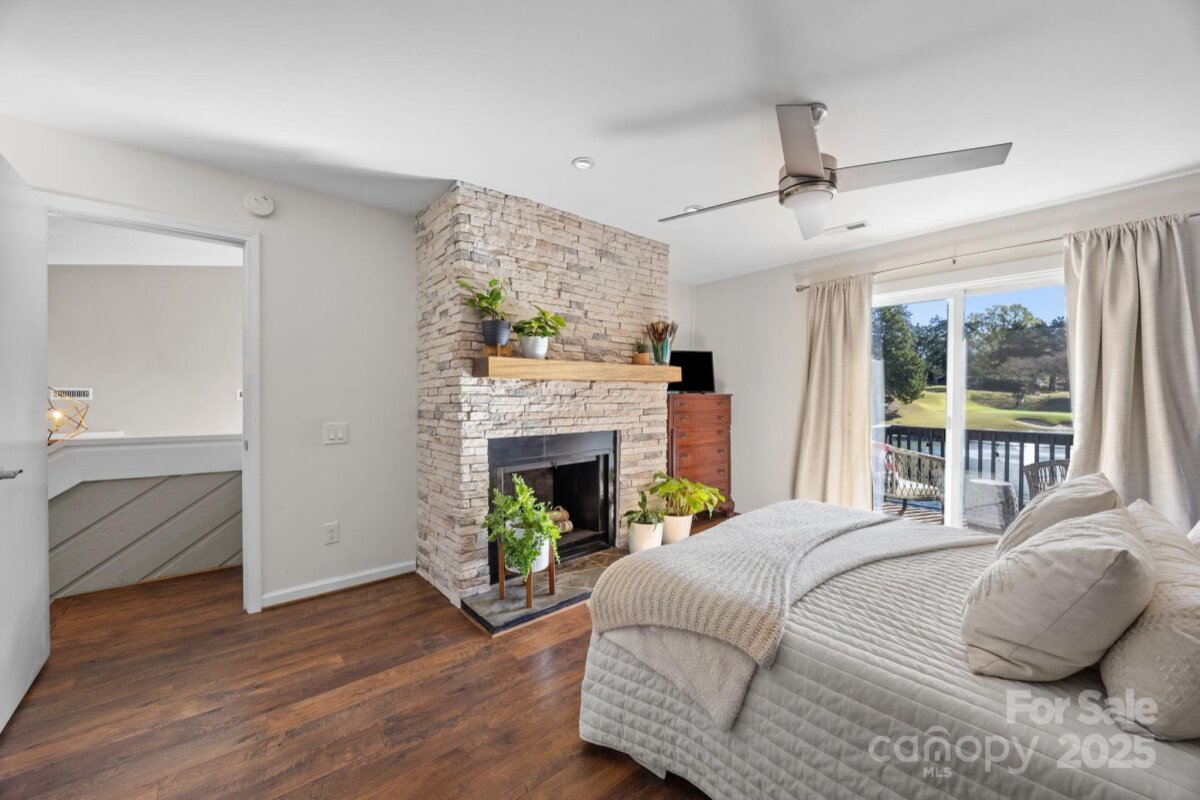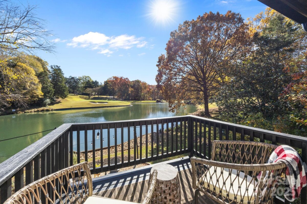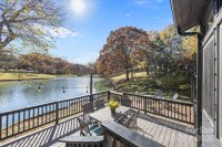 Discover this exceptional end-unit townhome, offering an unparalleled waterview overlooking the 4th green on the North course of Raintree Country Club. Located on a quiet cul-de-sac in the highly sought-after Raintree community, this tri-level residence showcases unique architectural charm and striking character at every turn. The main level features a versatile loft-style entry with built-in shelving that opens to an upgraded custom gourmet kitchen and bar—an entertainer's dream with high-end appliances, stunning custom cabinetry, waterfall quartz countertops and backsplash, and open shelving. Bright and airy with crisp finishes and sophisticated lighting, the space seamlessly flows into the dining area with vaulted ceilings and abundant natural light, perfect for hosting gatherings or everyday living. Step outside to a large deck off the dining area, ideal for dinner parties or relaxing evenings by the firepit while enjoying breathtaking water views. The lower level centers around a gorgeous two-story stacked-stone fireplace in the inviting living room, complemented by two comfortable bedrooms and an updated full bath. The primary suite offers a private retreat featuring a stacked-stone fireplace and a private balcony to enjoy spectacular water views and abundant wildlife. The suite’s luxurious ensuite includes dual vanities and a spacious walk-in closet—your sanctuary for relaxation and breathtaking scenery. Enjoy multiple outdoor living spaces overlooking tranquil water and golf course vistas. Additional features include an oversized two-car garage and recent updates such as new electrical and gas lines throughout, a fully remodeled kitchen in 2023, 2 new HVAC systems and hot water tank, new tile flooring, and fresh paint throughout. Experience the comfort and privacy of a single-family home with the convenience of townhome living—plus no monthly HOA fees and waived Raintree Country Club initiation fee! Don't miss your chance to own one of Raintree’s best-kept secrets. Schedule your showing today!