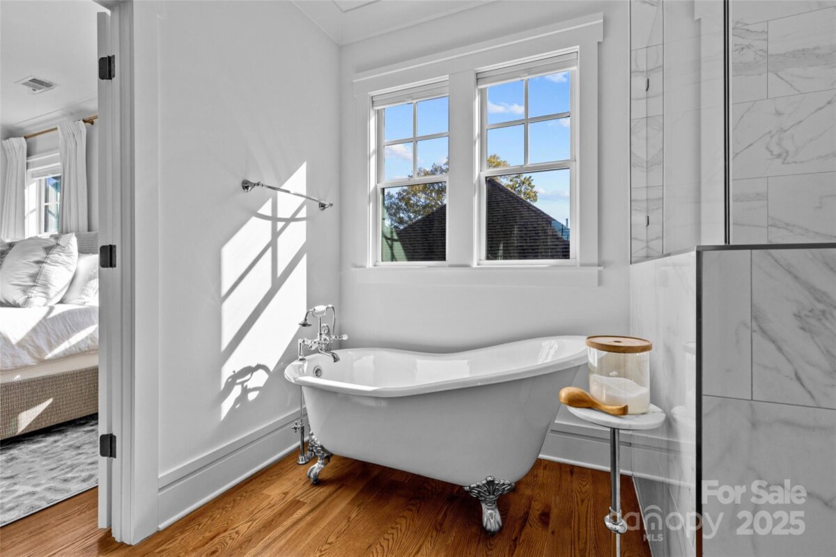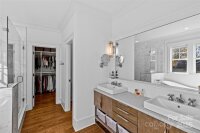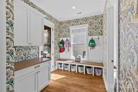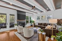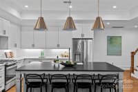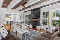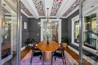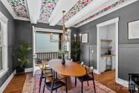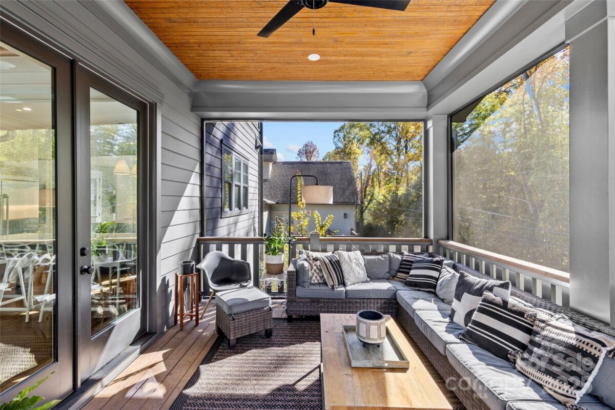Custom-built home by Carolina Craftsman in the highly sought-after neighborhood of Chantilly features 5 bedrooms, an office, a loft, a 6th room that can also be a bedroom or additional office or gym, plus another full kitchen on the lower level combined with another living space anchored by the 2nd gas fireplace, making this home perfect for multi-generational or large families, providing a very flexible floorplan as your family grows. The screened-in, elevated back porch expands the living space on the main level, overlooking the almost maintenance-free yard with artificial turf, an oversized stone patio featuring an in-ground gas fire pit, and ample seating and privacy for entertaining. Out front, the huge wraparound porch with side entrance into the mud room and drop zone further accent the long list of features in this home. Lightly lived-in and well-appointed with hardwood floors throughout, high ceilings, craftsman finishes, tons of storage both inside and out with custom hand-painted walls by a local artist all on one of the very best streets in Chantilly backing up to Little Sugar Creek, Chantilly Park, and the Chantilly Ecological Preserve all filtered by mature landscaping. A must-see for the neighborhood!