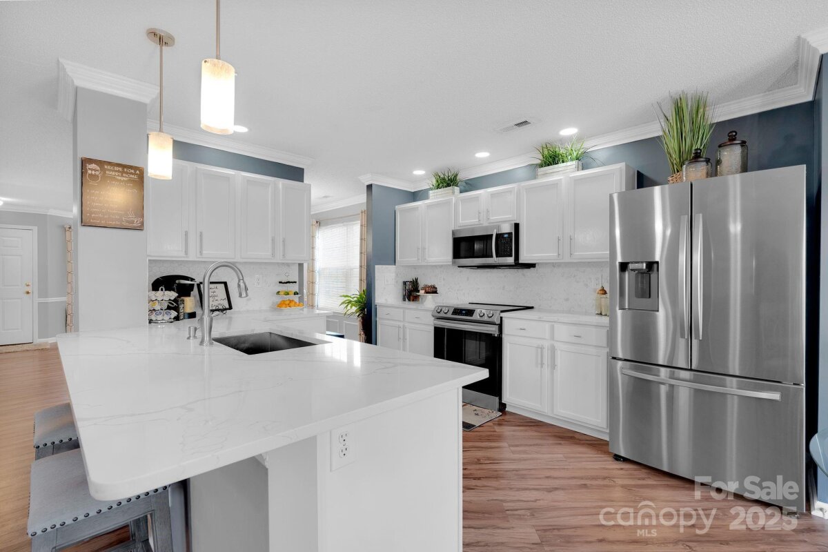 Hurry this Beautiful & Spacious 5-Bedroom, 3-Bath Home Near the Spencer Mountains and McAdenville, won't last long! Priced to Sell Fast. This lovely home features a bright, open layout with a modern kitchen boasting quartz countertops, stainless steel appliances and a Breakfast area with pantry. Lovely Vinyl plank flooring and carpet on the main levelThe interior paint makes the home feel inviting, with a brand-new water heater provide move-in peace of mind, along with a roof under 10 years old. There is a bedroom and full bath on the main level for love ones. The large primary bedroom includes a spacious en-suite with dual vanities and a generous walk-in closet. A new Electric Panel. Extra car pad in the driveway for 3 cars. Enjoy a private, fenced-in backyard—perfect for relaxing or entertaining. Conveniently located near the mountains, McAdenville, highways and major conveniences, this home offers comfort, space, and value! The neighborhood has 3 entrances. Bring all offers!