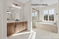 Welcome to modern comfort and spacious rooms in this new home in Harrisburg. This home sits on a .363-acre cul-de-sac homesite and backs up to a community pond and common open space. The exterior offers painted Hardie® cement siding with board and batten accents, a large front covered porch, plus a rear covered porch, and a carriage-style garage door. The first-floor features a spacious guest suite with private bath with tiled walk-in shower, 2-story foyer and formal flex room (think formal living, a music room, or statement dining space), and a study with tray ceiling. The open living space allows for easy entertaining, from the spacious kitchen to the family room and rear porch. The Kitchen features quartz counters, 42" white perimeter cabinets with Grey Mist cabinets at the island, soft-close doors and drawers, double trash pullout, 3" x 12" tile backsplash, GE Profile stainless steel appliances with a 36" gas cooktop and extraction hood vented outside, matte black hardware, walk-in pantry, and large island. The first floor is rounded out with a mudroom with built-in drop zone and a powder room. Upstairs is an expansive Primary Suite with tray ceiling and sitting area, huge walk-in closet, and elegant bathroom with tray ceiling, two separate vanities, large tiled shower, separate soaking tub, warm-stained cabinets, quartz counters, and tiled floor with 12" x 24" tiles. Two nice-sized bedrooms share a Jack & Jill bath with stained cabinets, tiled floor, and quartz counter. The laundry room is also on the second floor near the Bonus Room, which offers additional gathering space. LVP flooring is throughout most of the first floor, plus upstairs hall and laundry, with tile in full baths and oak treads on the stairs. Community amenities include a pool, clubhouse, tot lot, and walking trails. Located across the street from Stallings Road Park.