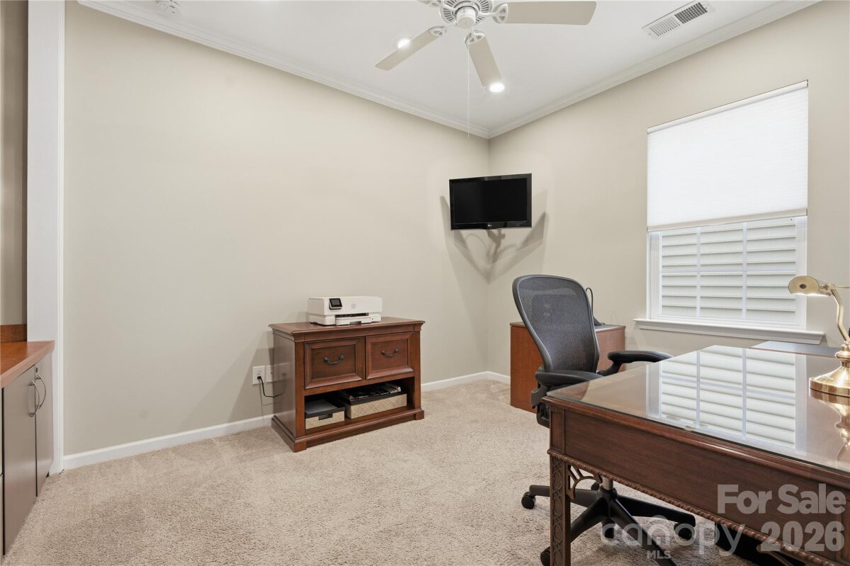 This popular and highly sought-after Dorchester 1.5-story floor plan is beautifully appointed, meticulously maintained, and designed for both comfort and style. Offering 4 bedrooms and 3 full baths with a split-bedroom layout, the open-concept design features a spacious kitchen with a large center island that flows effortlessly into the great room with fireplace and an abundance of windows, filling the home with natural light. The owner’s suite on the main level is a true retreat, complete with a private sitting room, spa-inspired bath, and a stunning custom walk-in closet system. Also on the main level are a formal dining room, two additional secondary bedrooms—one currently used as a home office—and a conveniently located laundry room near the garage with abundant storage options. Upstairs, enjoy a large loft, a private guest bedroom with full bath, and shelved walk-in attic storage—truly prime real estate. Outdoor living shines with peaceful backyard views the wooded area, offering privacy and a serene backdrop. Relax or entertain on the expansive 471-sq-ft paver patio with built-in wall seating and the trees offer nice shade. This outdoor space is easily accessed from the great room, kitchen, and three-season covered porch (with upgraded glass and screens) that also connects to owner's retreat. Residents enjoy a resort-style amenity package including a clubhouse, fitness center, outdoor pool, dog park, playground, pond, sidewalks, street lights, and walking trails, with lawn maintenance included in the HOA. Additionally, homeowners may choose to participate in a wide variety of community clubs, activities, and events, creating an engaging and active lifestyle—if desired. Nicely appointed in every way and thoughtfully cared for, this exceptional home offers comfort, convenience, and community. Just 20 minutes to South Charlotte, Ballantyne. Incredible shopping and dining options - nearby Harris Teeter, Publix, Lowes, Targe and Costco! Hurry—this one won’t last!