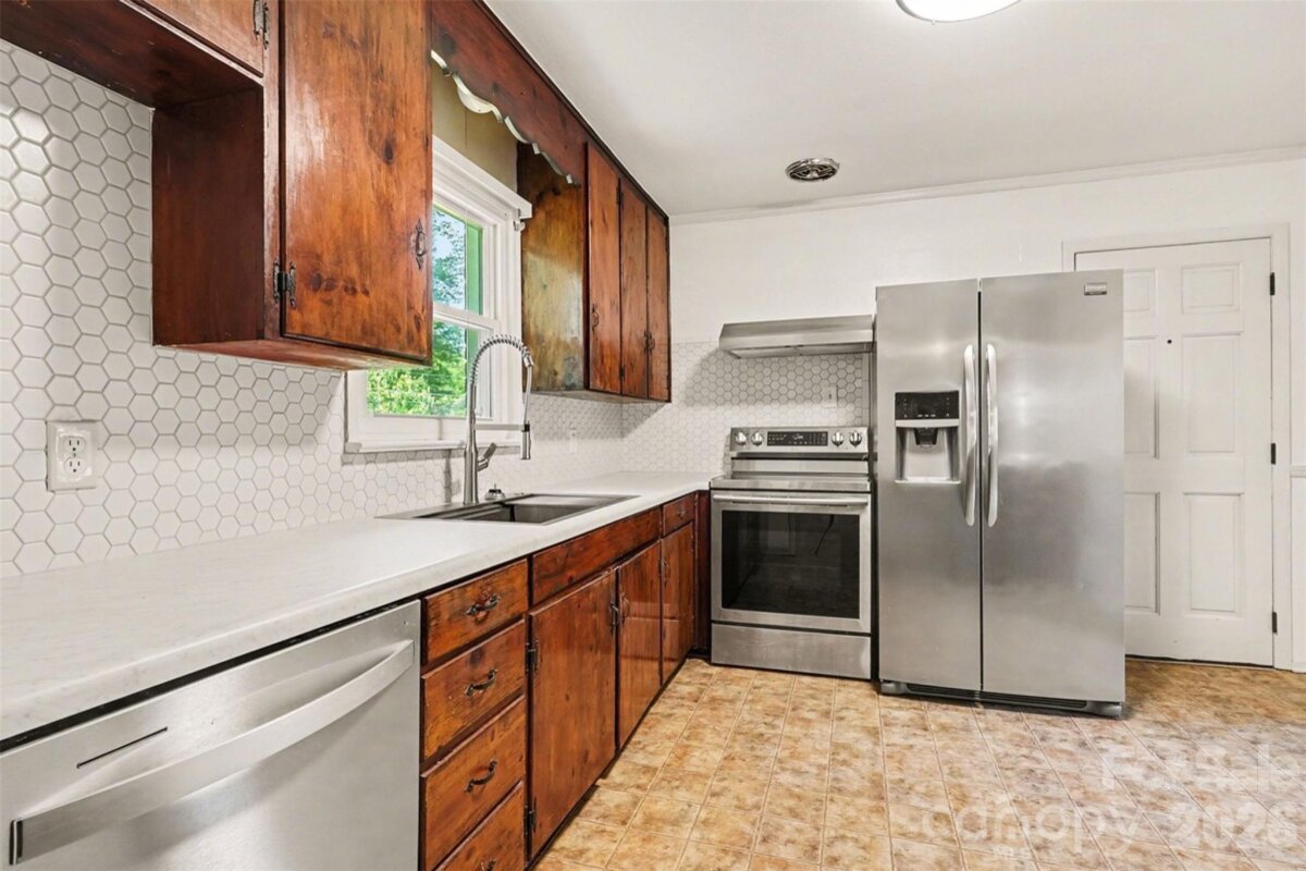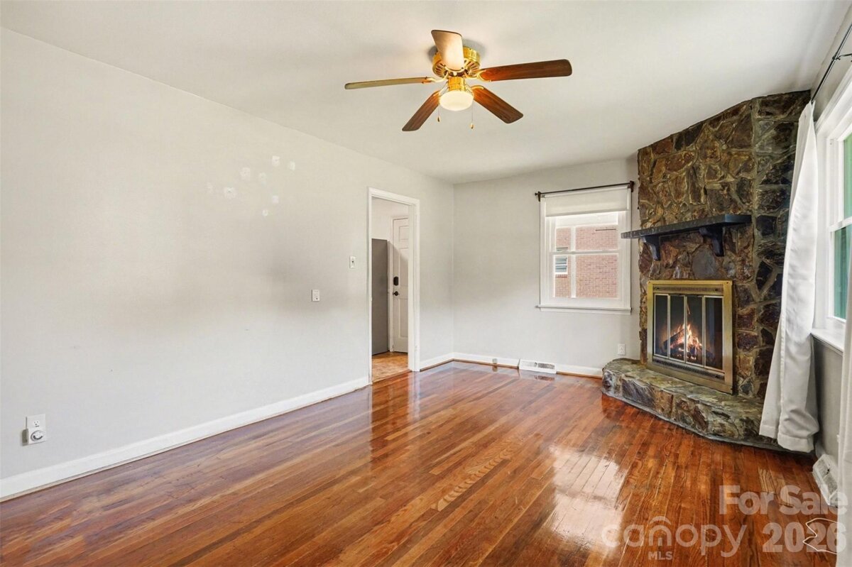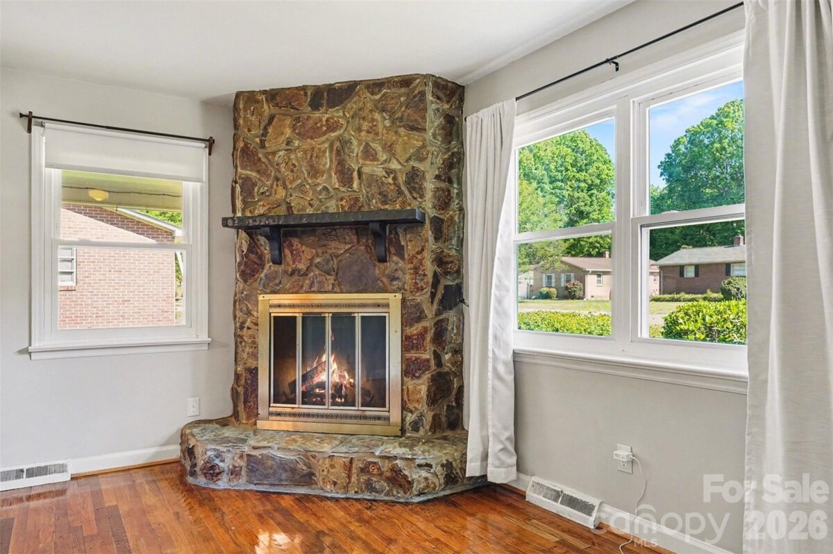 Charming 2 bedroom, 1 bathroom home located just minutes from Uptown Charlotte, NODA & Plaza Midwood with easy access to shopping, dining, and major highways! This well-maintained property features beautiful hardwood floors and a spacious living room highlighted by a STUNNING stone fireplace. The recently updated kitchen offers tons of cabinetry, stainless steel appliances, and a functional layout ideal for entertaining. Both bedrooms are well-sized and the single-level floor plan provides ease and convenience. Don't miss the large, level backyard with mature trees, perfect for outdoor entertaining or relaxing (plus a storage shed for added space!) Close enough to the action of the city yet tucked away on a quiet street. Major Upgrades: New Roof 2022, New Furnace & AC 2022, New Septic tank & Riser 2023
