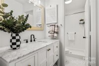 Beautifully renovated ranch home offering modern comfort and convenience. This move-in ready property features brand new luxury vinyl plank flooring throughout the main living areas and plush new carpet in the bedrooms. The updated kitchen shines with granite countertops and plenty of workspace, perfect for everyday living and entertaining. Enjoy a beautiful, backyard with mature trees and unbeatable access to the greenway, with restaurants, shopping, and easy commuting to uptown Charlotte. Energy- efficient solar power helps reduce utility costs and gutter guards add low maintenance peace of mind. A rare combination of style, efficiency and location. This home is a must see! Ask about the $2000 towards closing cost with preferred lender.