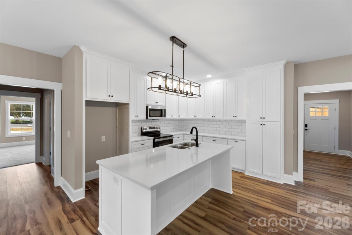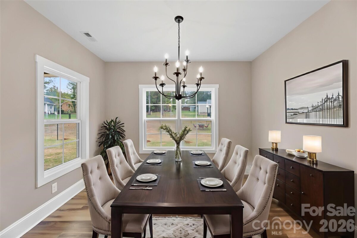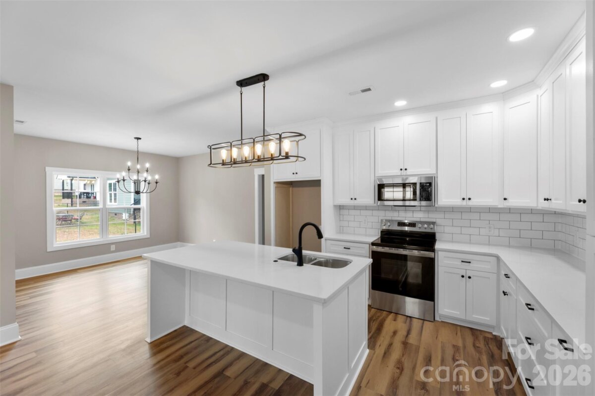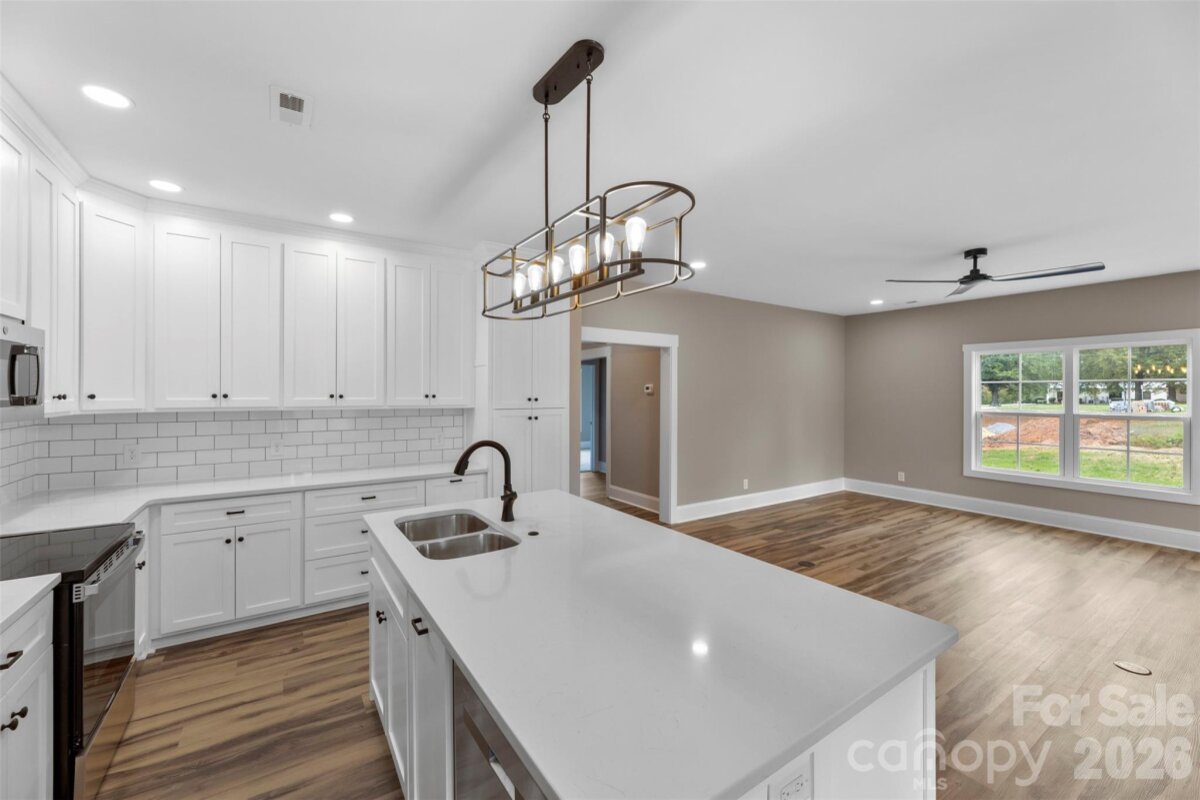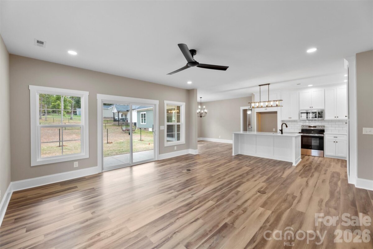 Picture this — you pull into your brand-new home on a sunny afternoon, the soft breeze swaying the chairs on your covered front porch. It’s the kind of porch that feels made for slow mornings with coffee, or evening chats. Step inside and you’re greeted by a spacious entryway that opens into the heart of the home — a bright, open living area where laughter and conversation flow as easily as the layout itself. The kitchen is both beautiful and functional, with stainless steel appliances, a tile backsplash, and plenty of space for cooking dinners or baking cookies on the weekends. The adjoining dining area and living room make this the perfect setup for gatherings big and small. The split-bedroom floor plan keeps everyone comfortable, with two bedrooms and a half bath on one side, and the primary suite tucked away on the other for privacy. The primary suite feels like a retreat after a long day, with plenty of natural light, a walk-in closet, and a spa-like bath featuring a tile walk-in shower, double vanity, and private water closet. Upstairs, you’ll find a flex space that’s full of possibilities, a playroom, game room, home office, or even a cozy guest space. Out back, enjoy a covered porch that’s perfect for backyard barbecues, catching fireflies, or watching the sunset after a busy day. With over 2,200 square feet, this new construction home is designed for living, gathering, and making memories, all in the heart of Kings Mountain, close to everything this wonderful community has to offer. Because this isn’t just a new house, it’s where your next chapter begins.