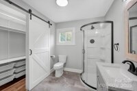 Stunning brick ranch, beautifully remodeled. Covered front porch with wood ceiling. The interior seamlessly blends the traditional charm of hardwood floors, wood-burning fireplace, and built-in shelves with modern conveniences such as the stunning kitchen and baths (2 updated, 1 new). The kitchen features stainless appliances, modern cabinets, tile floors, subway tile backsplash, and quartz counters. Sunny breakfast area with bar/built-ins and a spacious dining room. Lights/fixtures upgraded throughout. Walk-in closet with barn door and adjustable closet system off the primary ensuite bath. The oversized garage with epoxy floor includes a workbench, storage cabinets, and laundry area with sink. Wonderful outdoor living space includes a 205 sq ft screened porch, patio, and a lush back lawn with privacy fence and an outbuilding. Disclosing publicly that a small portion of the total heated sq ft includes an unpermitted addition (large storage closet converted to a full bath) that otherwise meets the definition of living area. Home comes with a 12-panel roof-mounted Solar P/V (7.6kW Alternating Current with battery per permit information) to give you significant energy savings! Wonderful location, convenient to shopping/dining and downtown Salisbury.