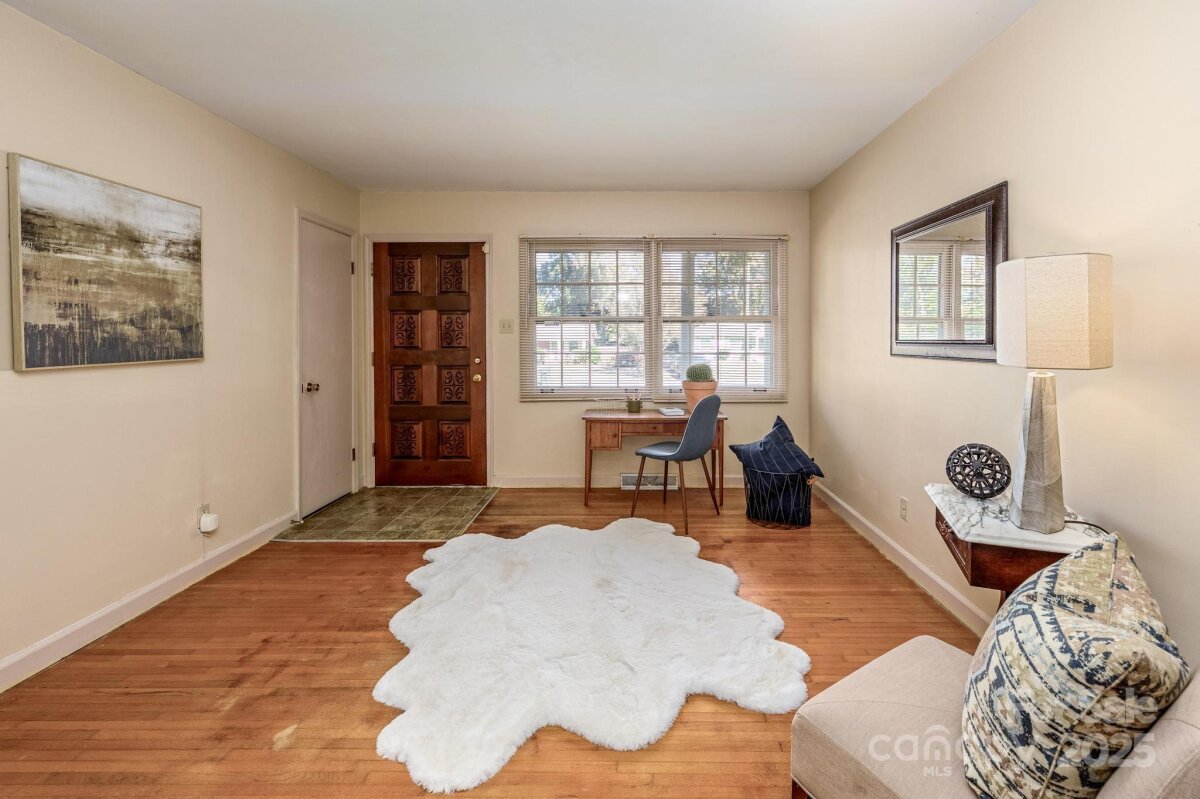 This classic 1967 brick ranch is located in one of Charlotte's upcoming neighborhoods. It offers 2 bedrooms, 1 and 1/2 baths, hardwood floors, located on a private lot. The large den has a masonary brick wood-burning fireplace with built ins. The family room addition features a huge light and airy space with gas FP and skylights giving the overall home an open feel. Nice kitchen, large primary bedroom. Minutes from shopping, dining and all the Charlotte amenities. Lots of charm and possibility! Priced to sell!