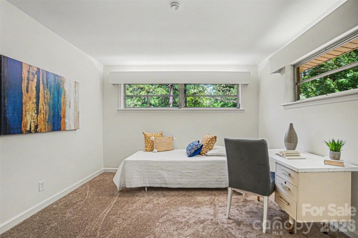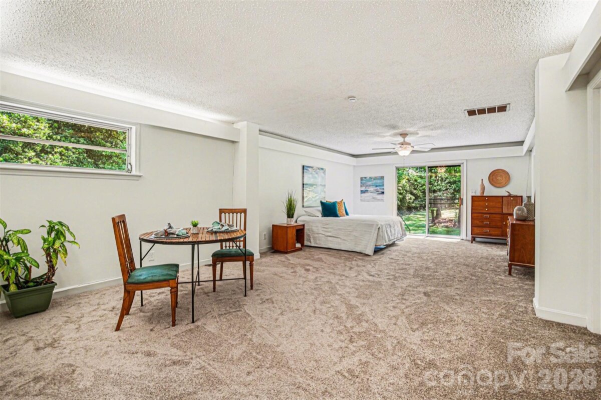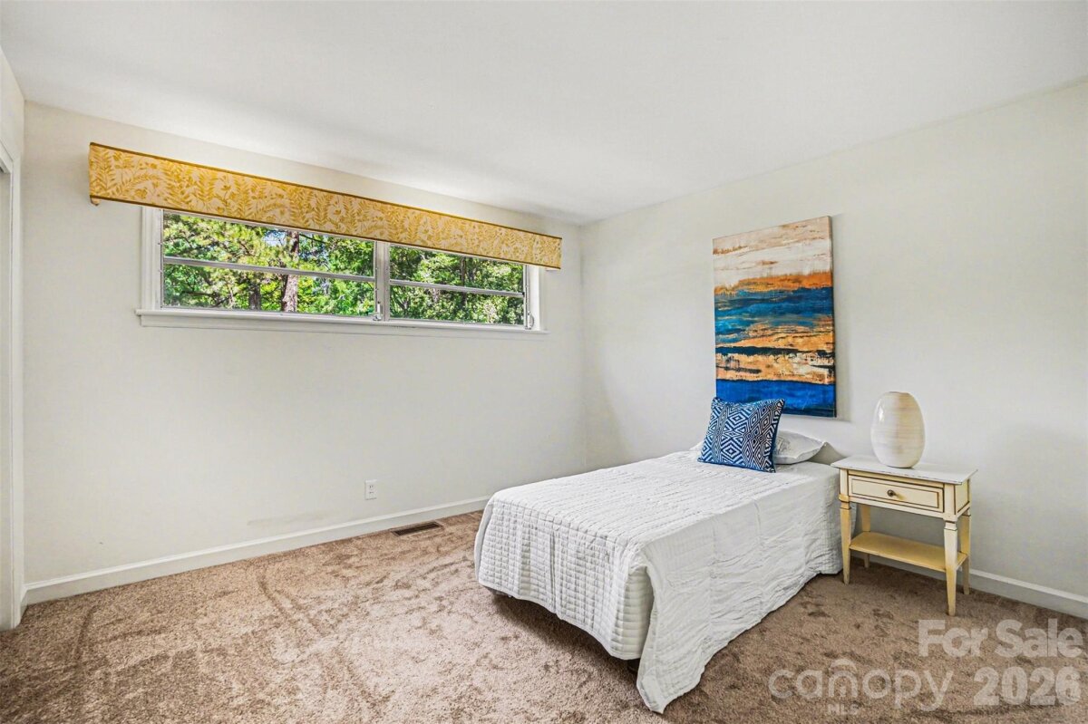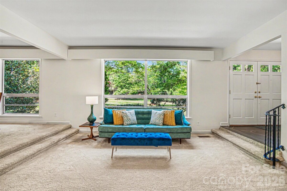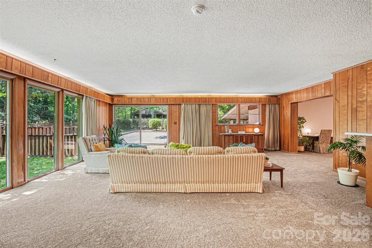 Discover this charming mid-century modern ranch on 1.3 acres in an unbeatable location. Tucked away in southeast Charlotte, this hidden gem offers the perfect mix of convenience, charm, and local favorites just minutes away. A stunning wall of windows fills the home with natural light, creating a warm and inviting atmosphere throughout. Step outside and unwind to the peaceful sounds of nature, or gather with friends and family in the spacious family room—complete with a built-in bar, perfect for entertaining. Floor-to-ceiling bookcases add character and make this space a true retreat for any book lover. The entire interior has been freshly painted and features brand-new carpeting and luxury vinyl plank flooring, offering a clean, updated feel while leaving room for your personal touches. Recent updates provide added peace of mind, including a new roof (2025), AC (2021), furnace (2023), and septic system pumped in February 2026. There is also the option to connect to sewer for future convenience. Outdoor shed/workshop fully wired with electricity—perfect for hobbies, storage, or a dedicated workspace. This home is ready for its next owner to make it their own—welcome home!