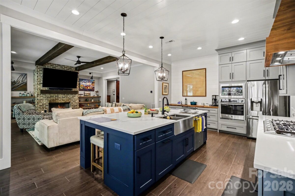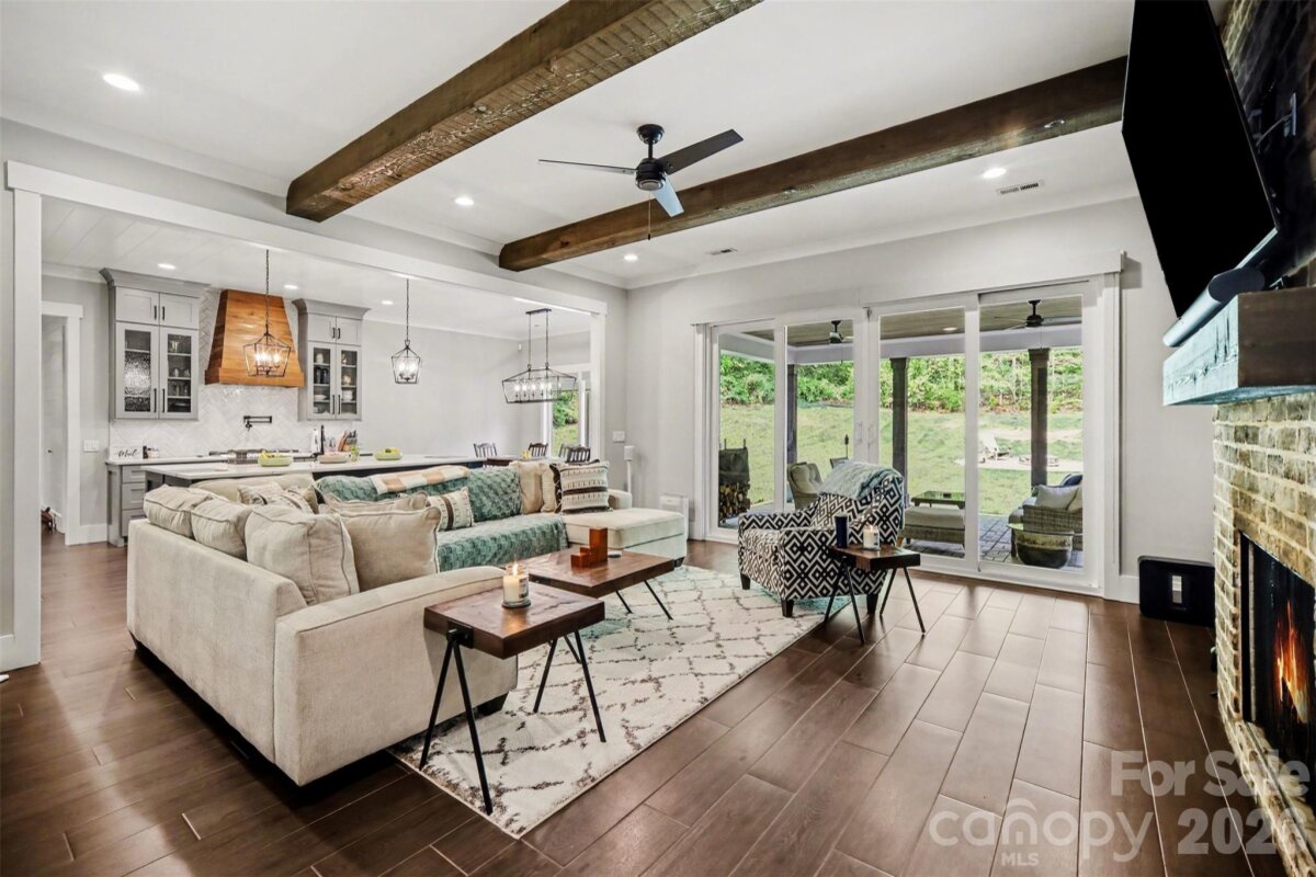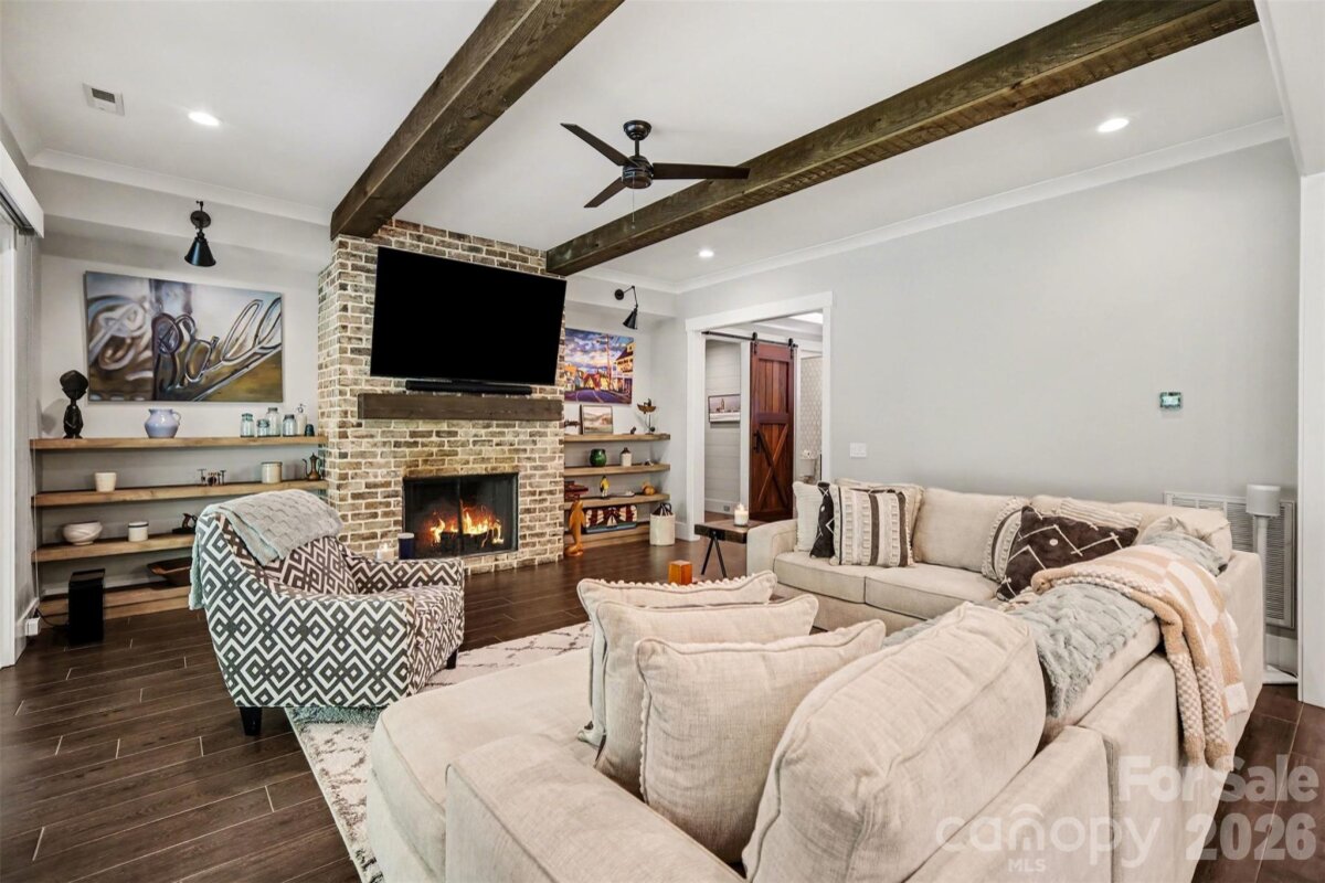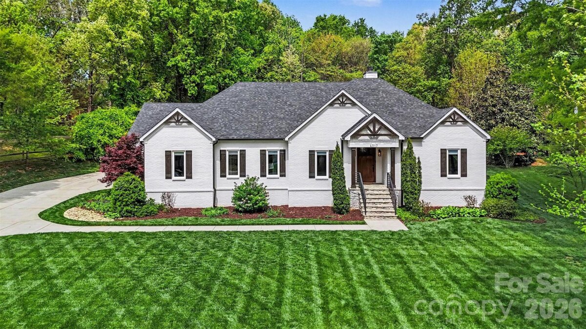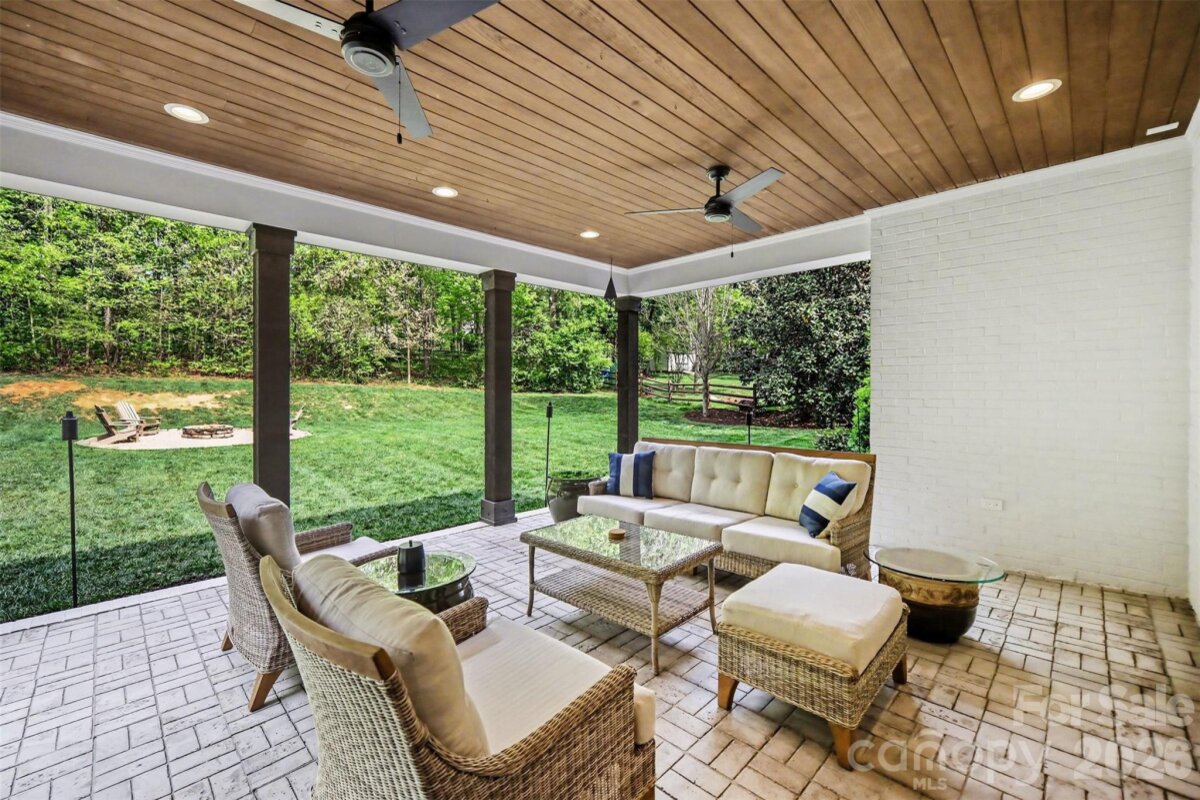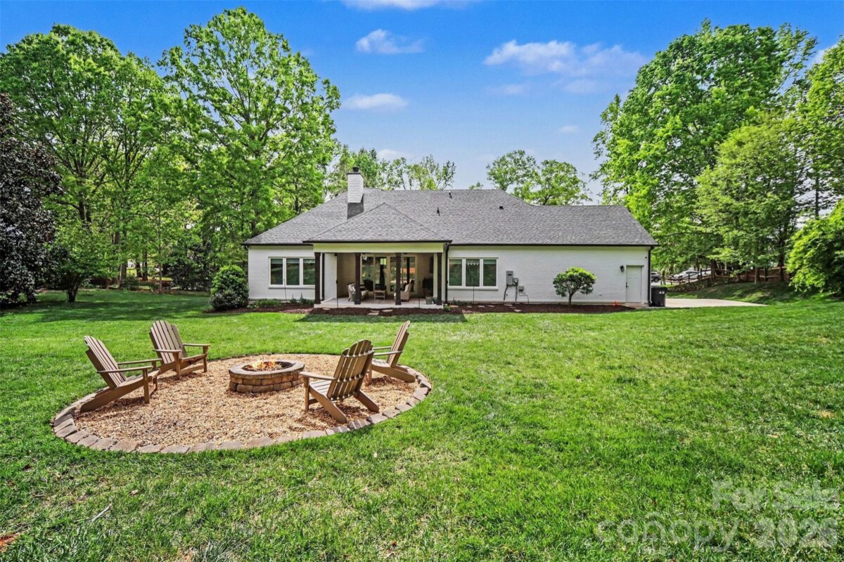 WATCH VIDEO TOUR OR 3D MATTERPORT! (if viewing on Zillow go to facts and features --- see more --- virtual tour) Rare opportunity to own a highly customized full brick ranch on nearly 3/4 of an acre in Charlotte. Originally built in 2018, this home offers the perfect blend of modern design, quality craftsmanship, and private outdoor living with no required HOA. From the moment you arrive, you’ll notice the private, tree-lined lot and curb appeal, but it’s what’s inside that truly sets this home apart. Step through the 8’ custom solid wood entry door into a thoughtfully designed interior featuring custom trim work, illuminated tray ceilings, and an open-concept layout built for both everyday living and entertaining. The main living area showcases a spacious living room with exposed beams and a stunning full brick fireplace, flowing seamlessly into a gourmet kitchen equipped with quartz countertops, custom cabinetry, gas cooktop with pot filler, wall oven, oversized island, walk-in pantry, and beverage/wine station. The split-bedroom floorplan offers privacy, with a luxurious primary suite featuring a spa-inspired bath with dual vanities, oversized custom shower, and heated tile floors. Additional bedrooms and flexible spaces—including a dedicated office—provide room to live, work, and grow. Step outside to your own retreat with a spacious covered patio with ceiling fans and recessed lighting, expansive backyard, and fire pit area, perfect for entertaining or quiet evenings under the trees. Located just minutes from I-485, shopping, and dining, this home offers the rare combination of space, privacy, and convenience + provides peace of mind with a Generac 22kW whole home generator installed in 2021! *For additional information regarding the generator, please see agent remarks.