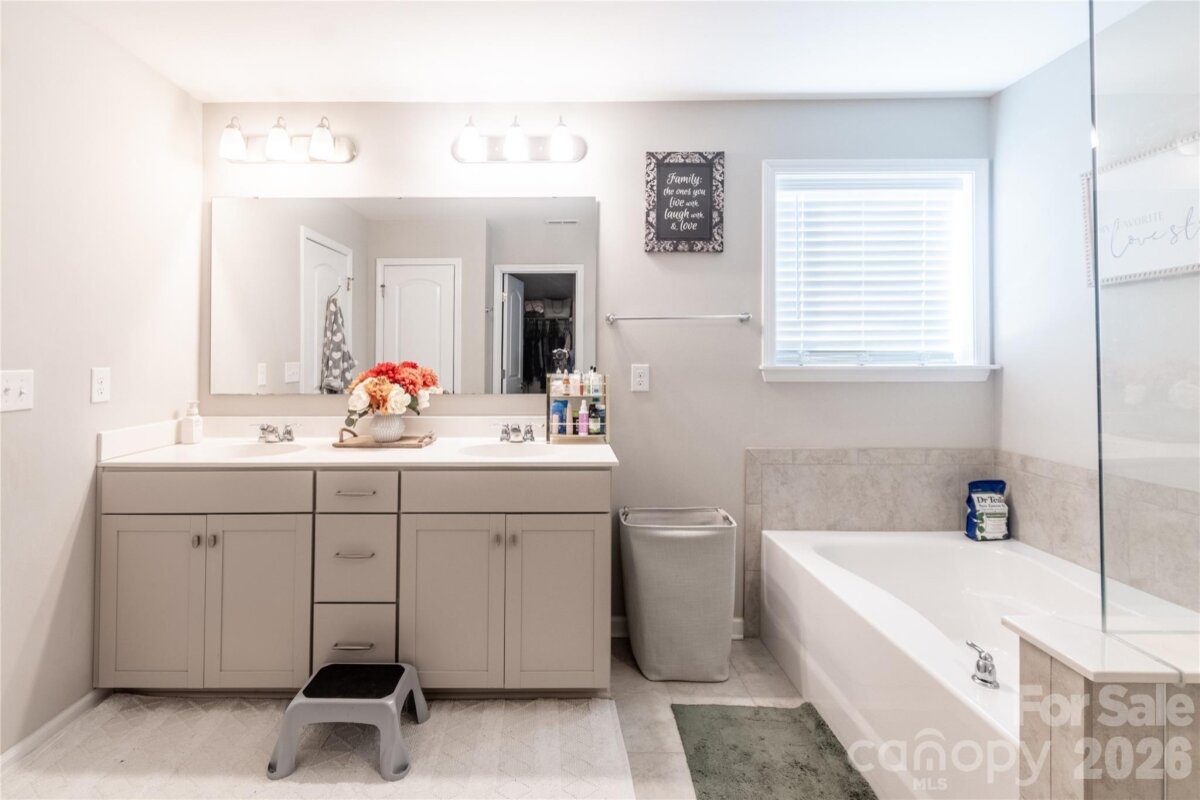 Move-in ready home with a spacious open floor plan designed for comfortable living and entertaining. The large kitchen features a gas stove and center island and flows into the great room, which features a cozy corner gas fireplace. A dining area with a breakfast nook and a main-level office offer flexible spaces for work or guests. Step outside to a covered porch and extended patio overlooking a fenced backyard with white vinyl privacy fencing. Upstairs includes four bedrooms, a large loft, and a convenient laundry room. The primary suite features a tray ceiling, a walk-in closet, and a bathroom with a soaking tub and separate shower.
