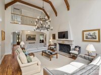 Welcome to an exceptional estate home on .7 acres located on the 2nd hole of Carmel Country Club's north course, just steps from the clubhouse. This stunning 6 bedroom, 5 full, 2 half bath home has a wonderful, inviting, and sensible floor plan. Upon entering, the two-story foyer has a beautiful, curved staircase, just the beginning of the charms of this home. The highlight is the 2-story great room with gorgeous, reclaimed beams, an oversized fireplace with limestone mantle, and expansive windows overlooking the fabulous back yard. The chef's kitchen is large and updated with custom cabinetry, a tongue and groove ceiling, professional grade appliances, and a great island. The adjoining breakfast room offers a built-in window seat, custom shelving, and pool views. The kitchen opens to the formal dining room which showcases built-in cabinetry with glass doors for displaying favorite pieces. The open floor plan blends seamlessly as the kitchen, dining room, great room, living room, and cozy den with stacked stone gas fireplace all flow together, fantastic for gatherings, entertaining and offering space for everyone. The main level is thoughtfully designed so that the expansive primary bedroom suite occupies its own wing of the home and has a cathedral ceiling with beams, two custom closets, a newly updated bathroom, and patio doors to its own loggia for enjoying coffee or relaxing in the afternoon. The other wing of the home has a guest suite with its own private bath. Upstairs are four generous sized bedrooms with bathrooms. Practicality meets elegance with a main level laundry room with abundant cabinetry and hanging space, a custom drop zone with a wall of cabinetry lockers with a desk and pet kennel, two attic spaces, and a two-car garage with storage. This home is adorned with high ceilings, heavy moldings, arched casings, solid doors, plantation shutters, and has recently been painted and updated. The outdoor living is perfection with a heated saltwater pool and spa and an outdoor living pool cabana with vaulted ceiling, beams, a gas stacked stone fireplace, and built-in entertainment center. A pool bath adds to the convenience. A fire pit adds to the fun! Newer roof and mechanicals.