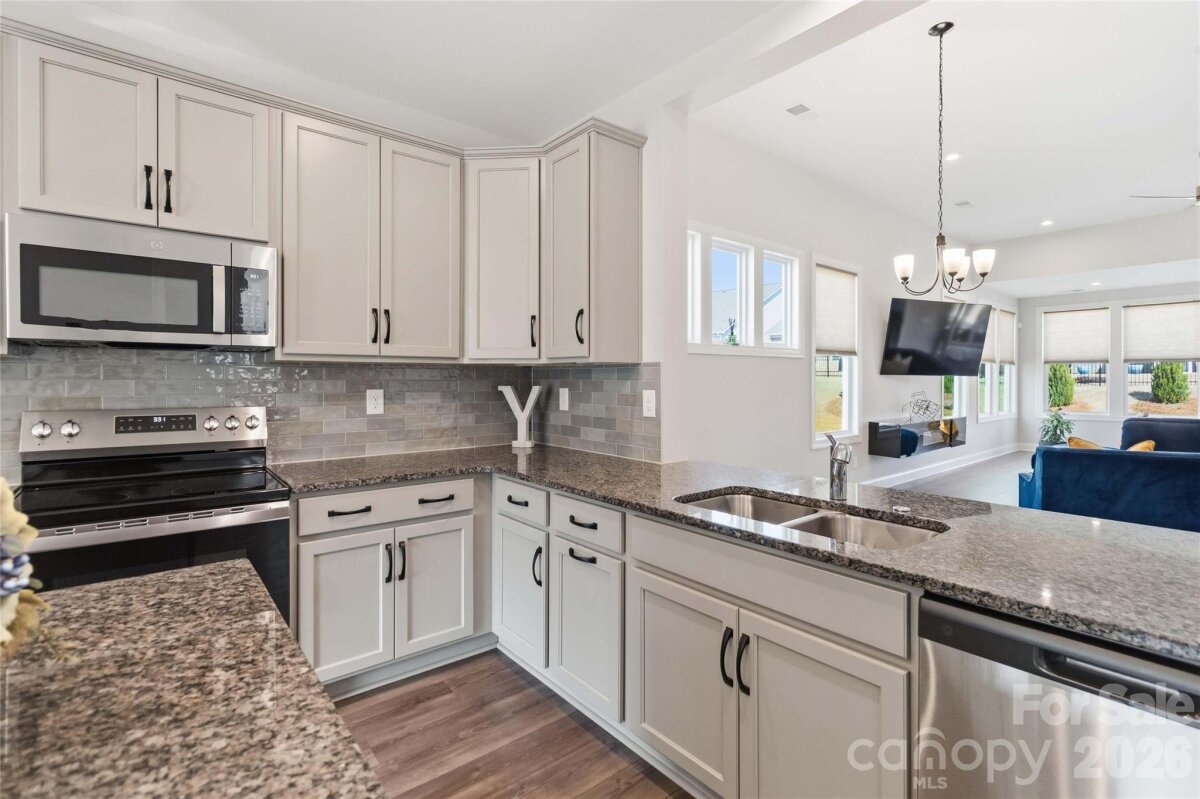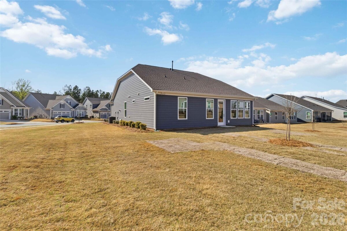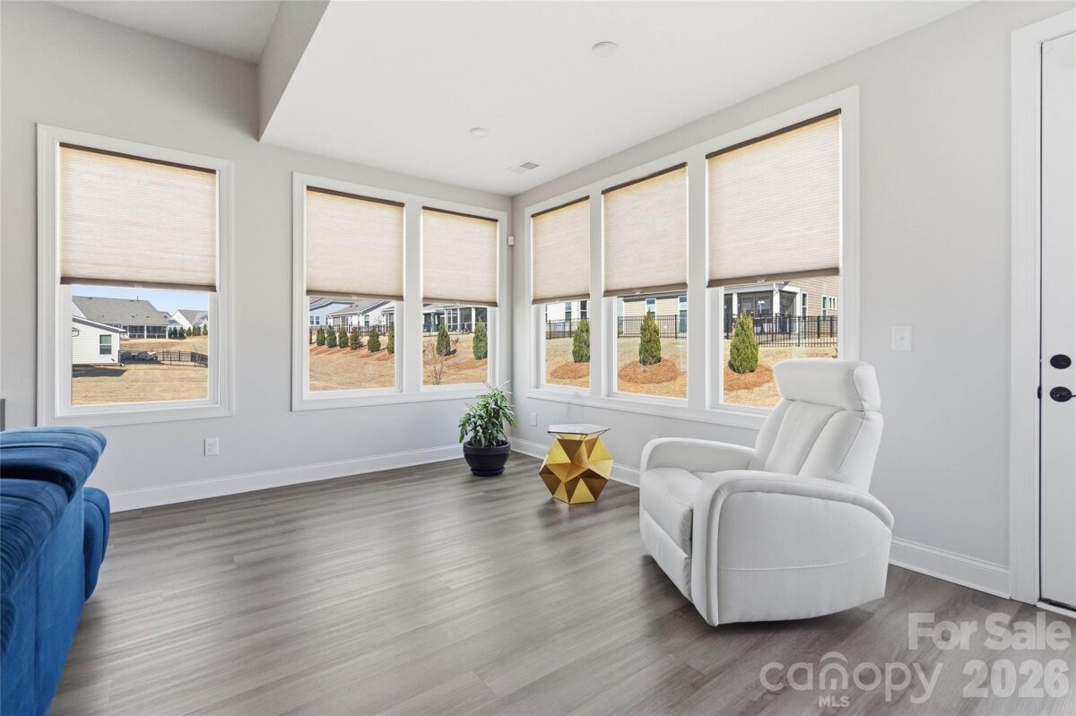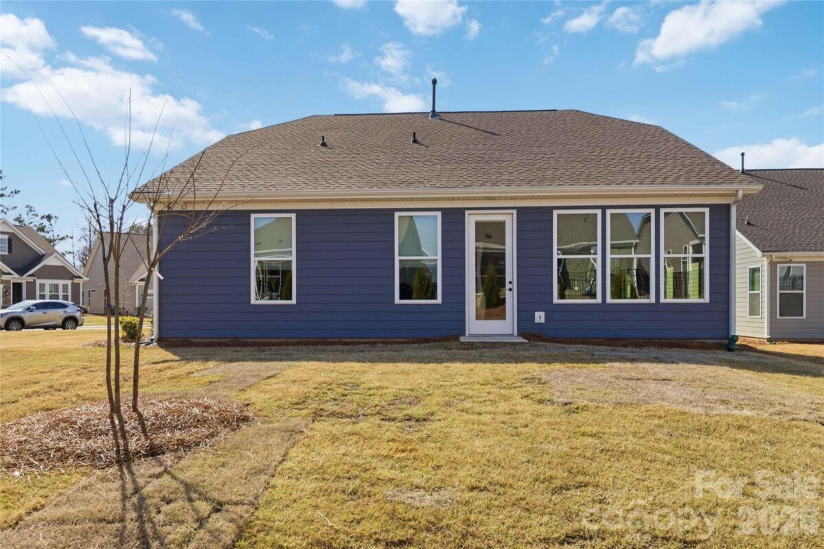 Thrive in this resort style living in this Active Adult Community at Cresswind Charlotte. A MUST SEE! Immaculate end-unit ranch with 360° views, huge lot and back yard, light filled open floorplan featuring 2 beds/2 baths, spacious primary suite with French doors, tray ceiling, and closet systems, custom cabinetry, upgraded hardware, roll-out trash cans, modern floating fireplace (remote, multi-color), ceiling fans with remotes, ceiling speakers, Ring doorbell, Wi-Fi garage opener, and durable no-carpet LVP flooring, no carpet. Private porch, large driveway for up to 4 vehicles, upgraded paint throughout. Enjoy the 18,000 sq ft clubhouse, indoor/outdoor pools, whirlpool, fitness, billiards, pickleball, bocce, arts & crafts, clubs, BBQs and much more. Don’t miss this maintenance-free gem!