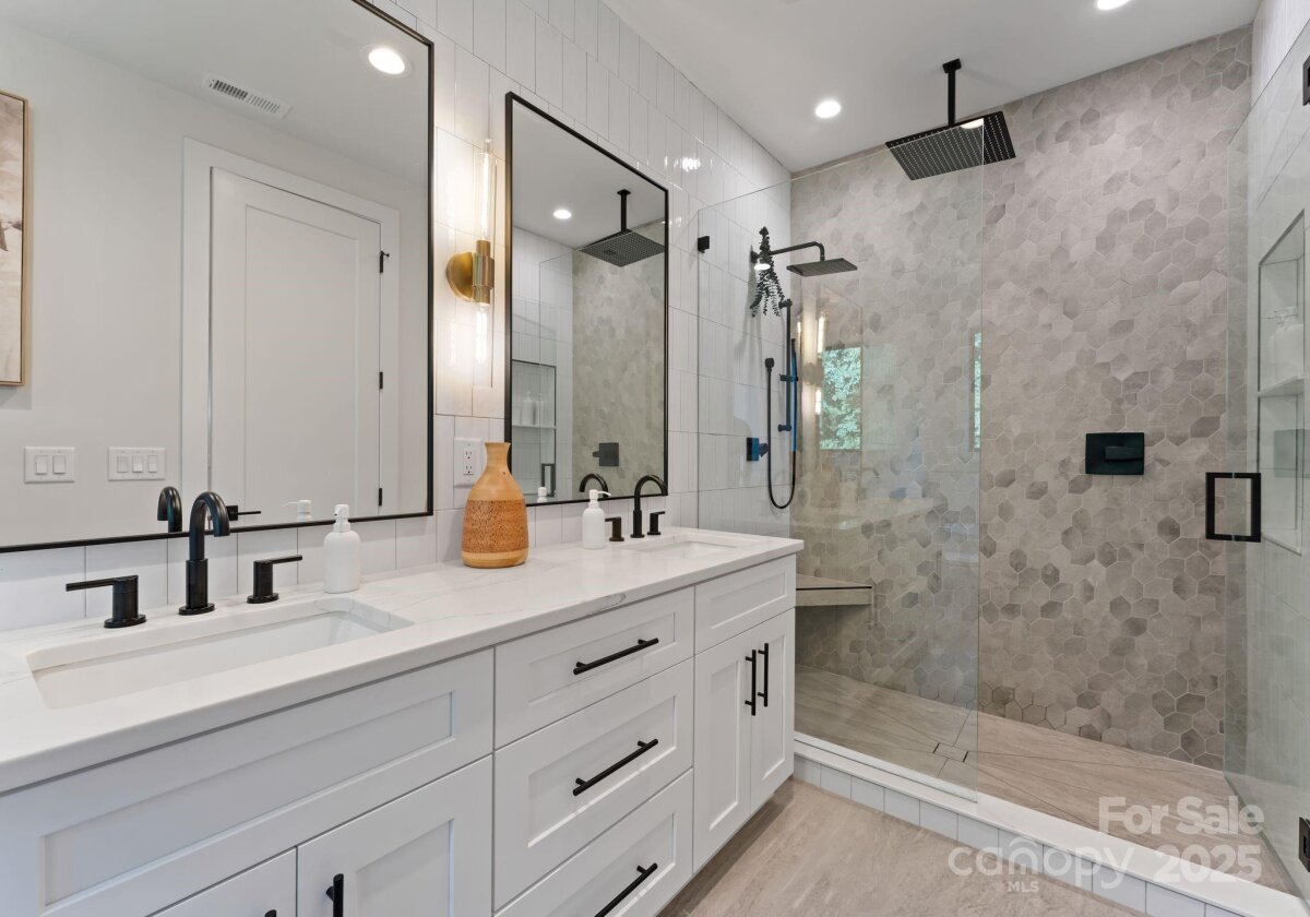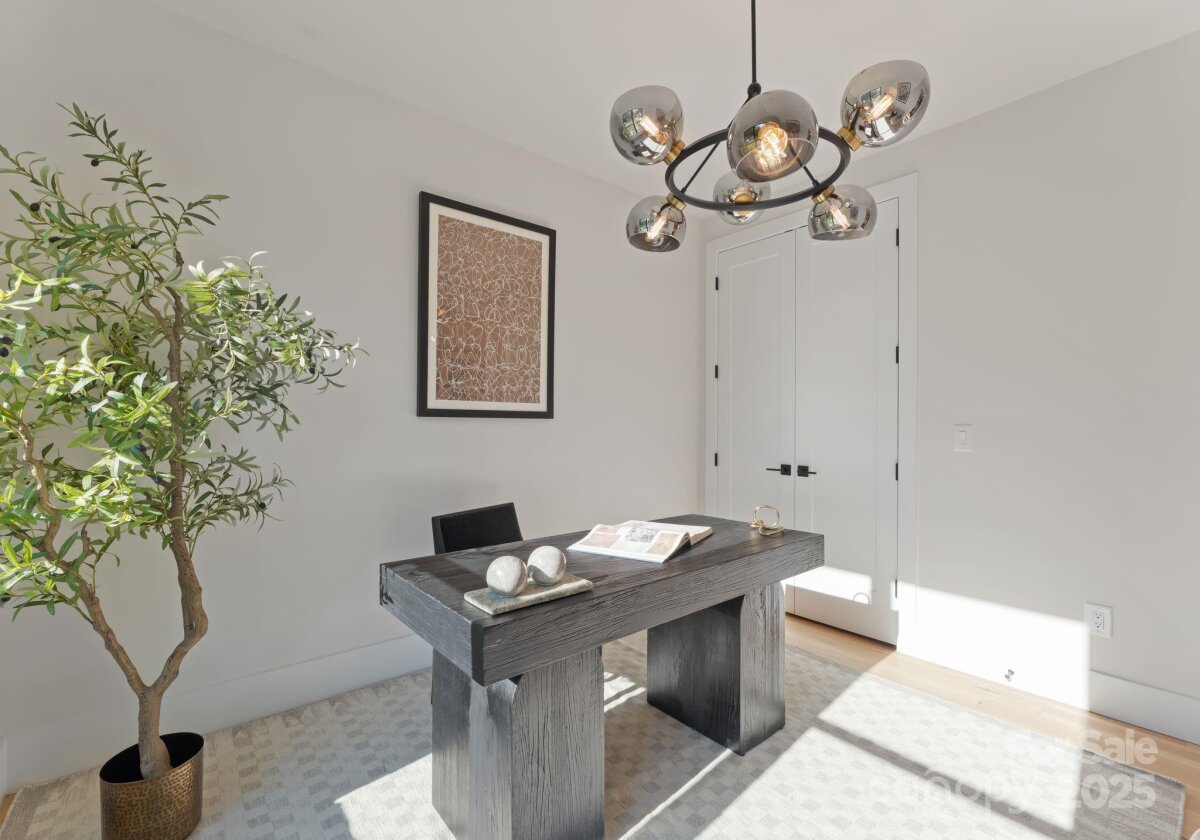 Stunning 2025 Northway Homes new construction in highly desirable Madison Park. This home features elevated style with luxury finishes and premium materials throughout. The open-concept main level offers a spacious living room, dining area, and chef’s kitchen with stainless steel appliances and a striking center island. Also on the main floor: a private office, half bath, and oversized two-car garage with extra storage. Upstairs boasts four bedrooms, including a luxurious primary suite with soaking tub, walk-in shower, and walk-in closet. A guest suite with ensuite bath and two additional bedrooms with a shared bath completes the upper level. The laundry room includes custom cabinetry and utility sink. Enjoy a beautifully landscaped, fenced backyard perfect for entertaining. Walk to Park Road Shopping Center and Montford. Minutes to Uptown, CLT Airport, and major highways. A rare opportunity to own a premier new construction home in one of Charlotte’s most established neighborhoods.