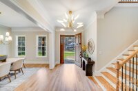 Spring Opportunity: Seller offering up to $50,000 toward design selections or closing costs with an approved offer—an exceptional value not expected to remain available for long. Discover this architecturally stunning 5-bedroom, 4.5-bath custom home nestled on 1.63 private wooded acres in the exclusive gated community of Riverchase Estates. Offering 4,657 square feet of refined living space, this is one of the largest homes in the community, showcasing 10-foot ceilings on the main level, 9-foot ceilings upstairs, and exceptional craftsmanship throughout. The dramatic two-story great room features a wall of sliding glass doors that open to a vaulted screened porch with a stone fireplace—creating seamless indoor-outdoor living and an ideal setting for year-round entertaining. The gourmet kitchen impresses with premium Thermador appliances, a built-in refrigerator, oversized island, custom cabinetry, and a spacious walk-in pantry designed for both style and function. Retreat to the luxurious main-level primary suite complete with a fireplace, private sitting area, and spa-inspired bath. A secondary bedroom with ensuite is also located on the main level, ideal for guests or multigenerational living. Upstairs, enjoy a spacious bonus/media room, private office, two additional bedrooms, and abundant walk-in attic storage. Additional highlights include a large laundry room, full-yard irrigation, a pool-ready backyard, and an oversized three-car garage offering more than 1,500 square feet—perfect for storage, a workshop, or a home gym.