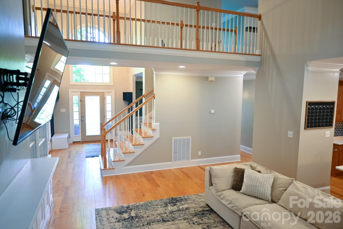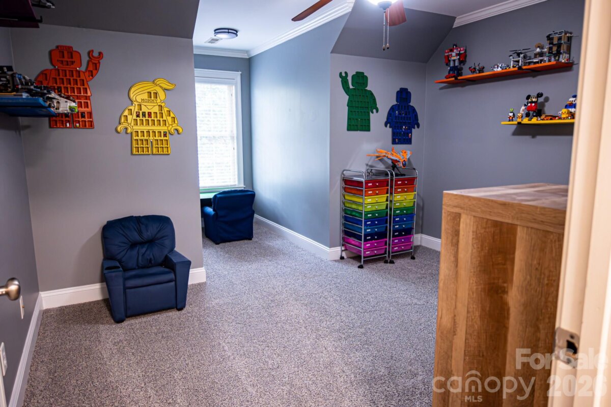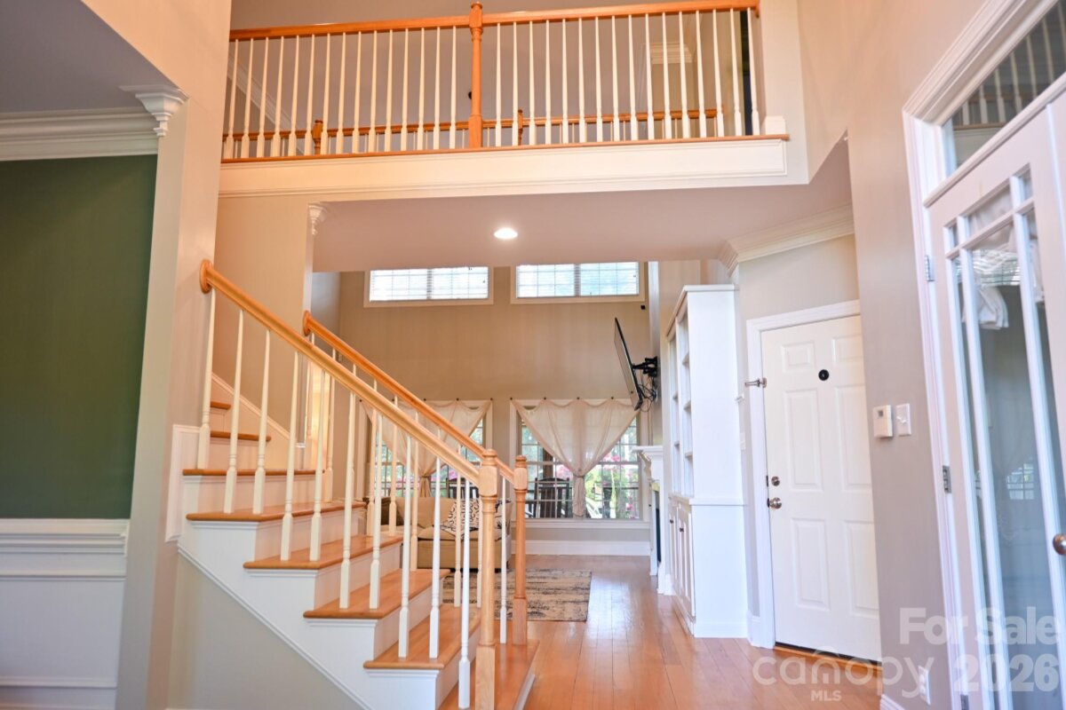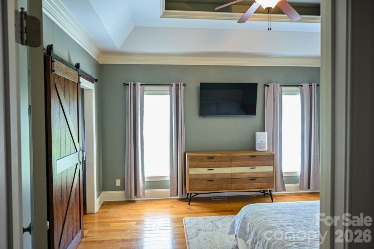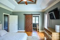 Discover refined living in this stunning 4-bedroom, 3-bath home nestled in the coveted Patrick Place community. The main level welcomes you with an airy open floor plan and a luxurious primary suite featuring a double tray ceiling, dual walk-in closets, and a serene spa-inspired bath designed for relaxation. A second main-level bedroom and full bath add exceptional convenience for guests or multigenerational living. The great room impresses with soaring vaulted ceilings and custom built-ins, while the formal dining room and French-door office offer versatile spaces for entertaining, working, or unwinding. Upstairs, a thoughtfully divided loft provides flexible areas for work, play, or quiet retreat, accompanied by two spacious bedrooms, a full bath, and walk-in attic storage. Outdoor living takes center stage with an expansive paver patio, built-in fire pit, multiple seating areas, and integrated lighting—creating a private sanctuary perfect for everyday relaxation or hosting friends and family. The side load three car garage and extra long driveway are ideal for gatherings. Front uplighting and full-yard irrigation enhance the home’s polished curb appeal and effortless maintenance.
