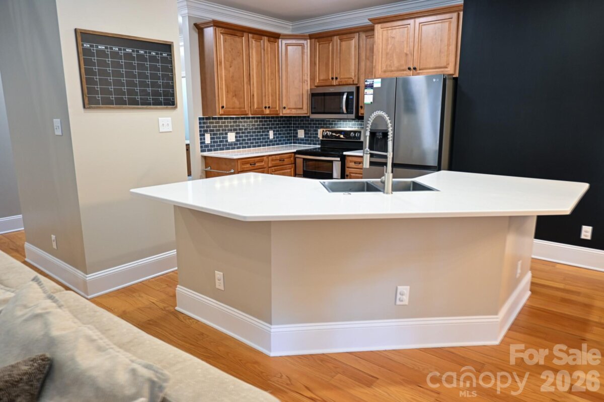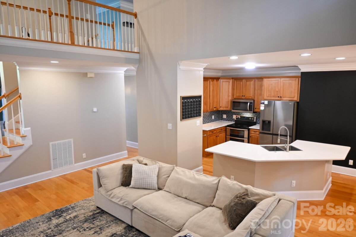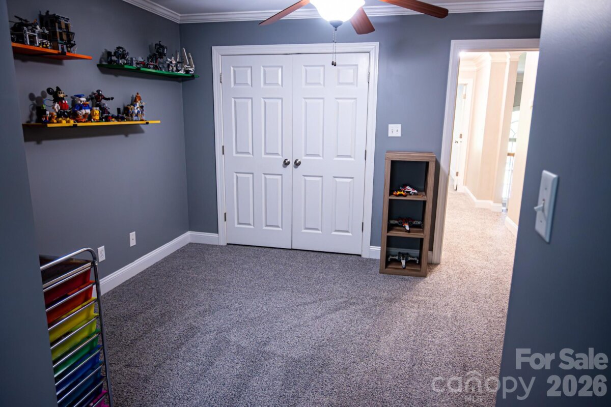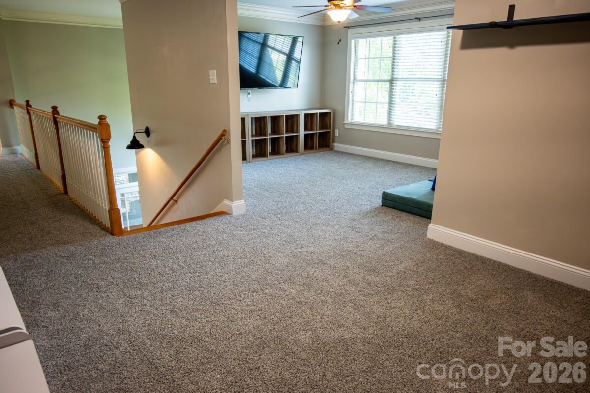 Discover refined living in this stunning 4-bedroom, 3-bath home nestled in the coveted Patrick Place community. The main level welcomes you with an airy open floor plan and a luxurious primary suite featuring a double tray ceiling, dual walk-in closets, and a serene spa-inspired bath designed for relaxation. A second main-level bedroom and full bath add exceptional convenience for guests or multigenerational living. The great room impresses with soaring vaulted ceilings and custom built-ins, while the formal dining room and French-door office offer versatile spaces for entertaining, working, or unwinding. Upstairs, a thoughtfully divided loft provides flexible areas for work, play, or quiet retreat, accompanied by two spacious bedrooms, a full bath, and walk-in attic storage. Outdoor living takes center stage with an expansive paver patio, built-in fire pit, multiple seating areas, and integrated lighting—creating a private sanctuary perfect for everyday relaxation or hosting friends and family. The side load three car garage and extra long driveway are ideal for gatherings. Front uplighting and full-yard irrigation enhance the home’s polished curb appeal and effortless maintenance.