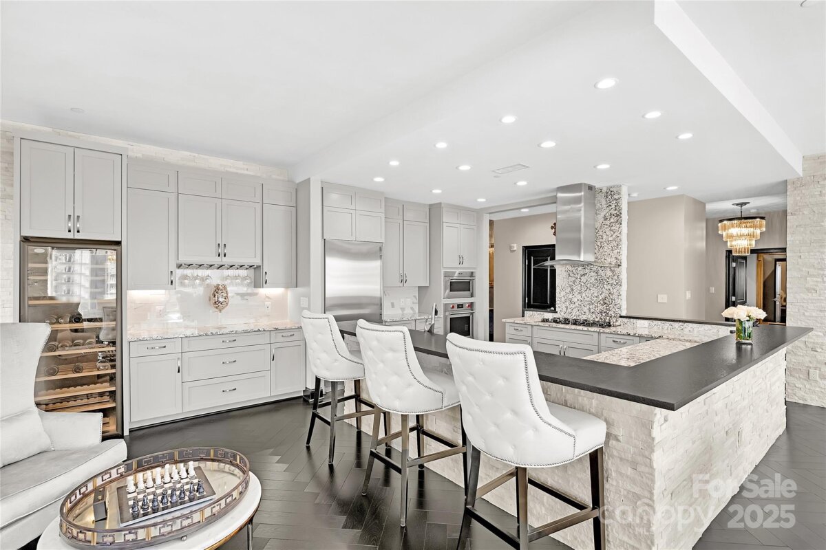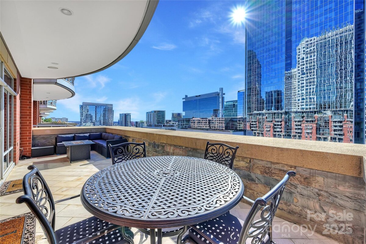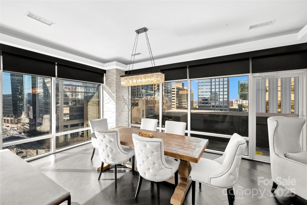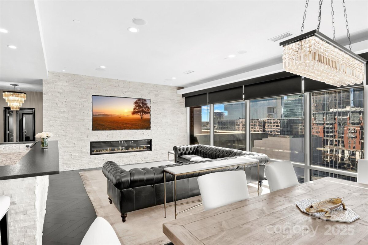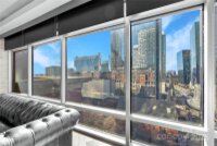 Modern Elegance at The Ratcliffe. Sleek, sophisticated, and perched above the heartbeat of Uptown, this glass-wrapped one-level residence at The Ratcliffe offers an unrivaled blend of style and convenience. Designed for those who value luxury with ease, this home delivers a true lock-and-leave lifestyle in one of Charlotte’s most iconic addresses. Inside, clean modern lines are softened by the warmth of hand-selected, tea-stained white oak floors by Burchette & Burchette (Elkin NC), recently installed to elevate every room. Floor-to-ceiling glass frames sweeping skyline views and bathes the space in natural light, while two private terraces extend the living experience outdoors. From the oversized primary terrace, take in iconic south-facing vistas over the manicured gardens of “The Green†and the vibrant energy of South Tryon Street. The kitchen is both functional and refined, designed for serious cooking and entertaining. Outfitted with Sub-Zero refrigeration, gas cooktop, Wolf wall oven, and wine chiller, it balances professional-grade appliances with ample storage and well-planned work areas. The oversized primary suite serves as a private retreat, with direct access to the terrace, a spa-inspired bath featuring a floating dual vanity, steam shower, and generous storage. Two additional bedrooms provide flexibility for guests or home office needs, each with thoughtfully designed closet space. Additional features include statement lighting, modern paint selections, two prime parking spaces, and a private storage unit conveniently located next to the condo. Beyond the residence, The Ratcliffe offers one of Uptown’s most celebrated locations—seamlessly connected to art, culture, dining, and the city’s thriving business district. Positioned directly above The Green, with the Knight Theater, Bechtler Museum, and some of Charlotte’s finest restaurants just steps away, the building embodies an iconic Uptown lifestyle that few can claim. Sleek design, lock-and-leave convenience, and a setting at the center of it all—welcome to The Ratcliffe.
