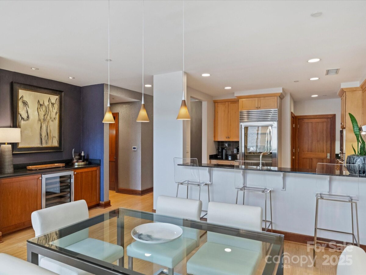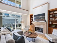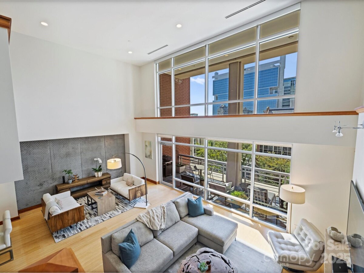 Stunning two-story residence located in the prestigious Uptown midrise, The Ratcliffe. This 2 bed/2.5 bath condo of 2295 sq ft offers luxury and exceptional quality across the open-concept design. Floor to twenty-foot ceiling windows flood the home with natural light and breathtaking views of The Green and Charlotte skyline. A well-appointed kitchen featuring Sub-Zero and Thermador is open to dining and living for ease of entertaining. The two-story great room with gorgeous fireplace and custom built-ins is dramatic in design. It leads to an equally impressive terrace which allows residents to enjoy the city without leaving home. Upstairs, the primary suite features a luxe, spa-inspired bath and extraordinary walk-in closet with laundry chute. The loft affords flexibility of use and could be the perfect space to work from home. Storage throughout the property has been recently upgraded with tailor-made systems by Elfa. An additional spacious closet is just outside the front entry in the hallway. Two deeded parking spaces are located in a secured, gated section of The Green parking garage. This connected parking deck also offers a convenient parking option for guests. In the center of it all, living at The Ratcliffe means easy access to the Overstreet Mall and Charlotte's skywalk system. Shopping, dining and entertainment are just outside the door.