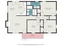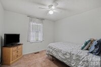Rustic Red Ranch on a private lot with no neighbors beside or across. This 3-bedroom, 2-bath home features a welcoming rocking chair front porch, a large fenced backyard with firepit area and outbuilding for storage. Cozy living room offers a brick hearth fireplace, vaulted ceiling, and ceiling fan, open to the kitchen dining area. Kitchen includes stainless steel appliances, dining space, and French doors leading to the backyard. All bedrooms offer good space and ceiling fans. Primary bedroom features two closets, including a walk-in. Primary bath includes tile flooring, vanity, and unique wood trimmed shower. Additional highlights include an encapsulated crawlspace and exterior paint completed in 2024. Convenient to shopping, restaurants, and schools. Charming home ready for new owners! Great Value - no HOA!
