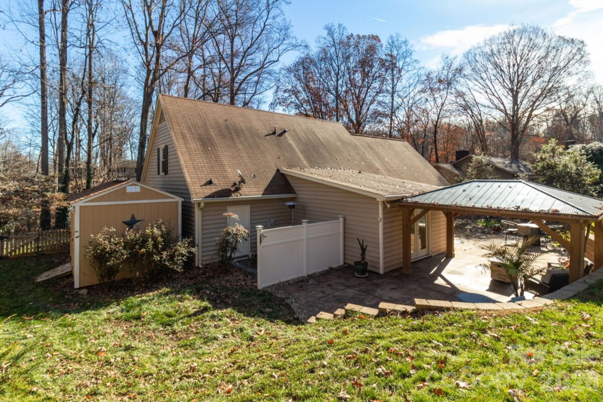 Welcome to this charming move-in ready home in highly sought-after Kernersville! Enjoy modern living with no carpet throughout, featuring beautiful laminate wood floors. The stunning galley kitchen boasts granite countertops, pull out cabinets, Main level features a large laundry room with ample storage, Primary Suite with a stylish accent wall. Upstairs, find two spacious bedrooms, a full bath, and a walk-in attic ready to be finished or use for storage. Eave storage in 3 locations upstairs. This home is not lacking storage space. Storage building will also remain. Perfect for entertaining, the backyard patio includes covered patio, and space for a outdoor BBQ. The 2 car garage features epoxy floors and a space for storage. Updated Window World windows, some have plantation shutters. Excellent location—just minutes from downtown Kernersville, WS, approximately one mile from the scenic walking and biking trails at Salem Lake.