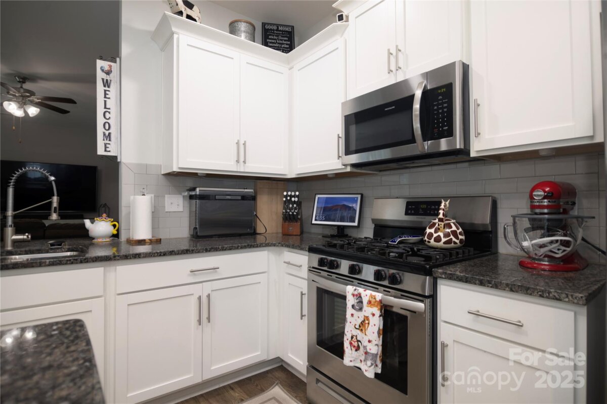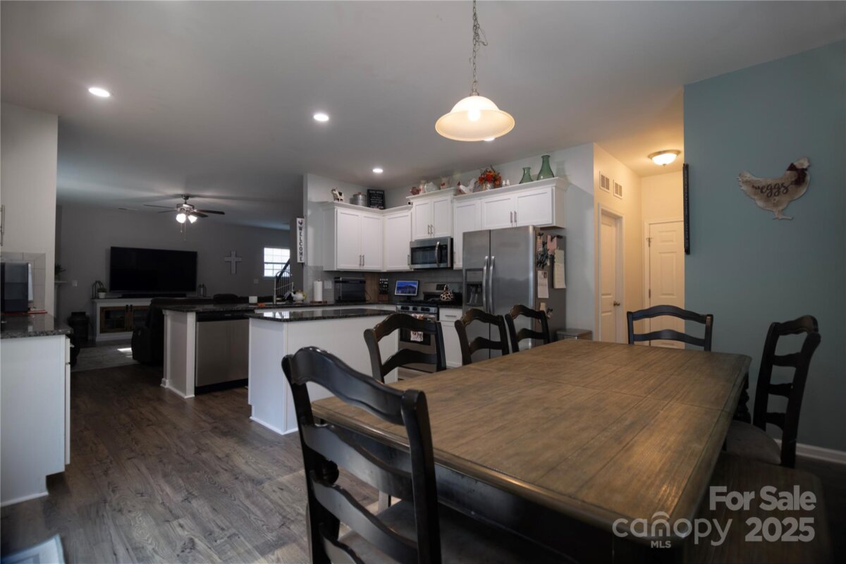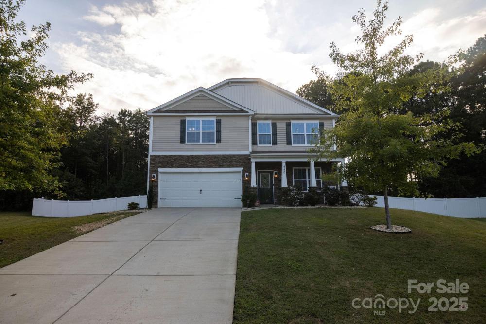 Have you been looking for a newer home in a neighborhood with larger lots close to Charlotte? You won't want to miss this .57 acre, partially wooded lot in a cul-de-sac built in 2018. The yard has a privacy fence along the front and sides, with the back open in the woods. There's plenty of room to play and garden or add a swimming pool for a private oasis. Inside you'll find this home to provide functional living with 2 flex space, one on each level as well as a dining room and kitchen well equipped to be the heart of your home. The kitchen is open to the living room, with sliding doors to the patio to connect you to nature and provide quick access to an herb garden just outside the kitchen. Upstairs there are 4 bedrooms with walk-in closets. The flex space on this level is currently being used as a 5th bedroom.