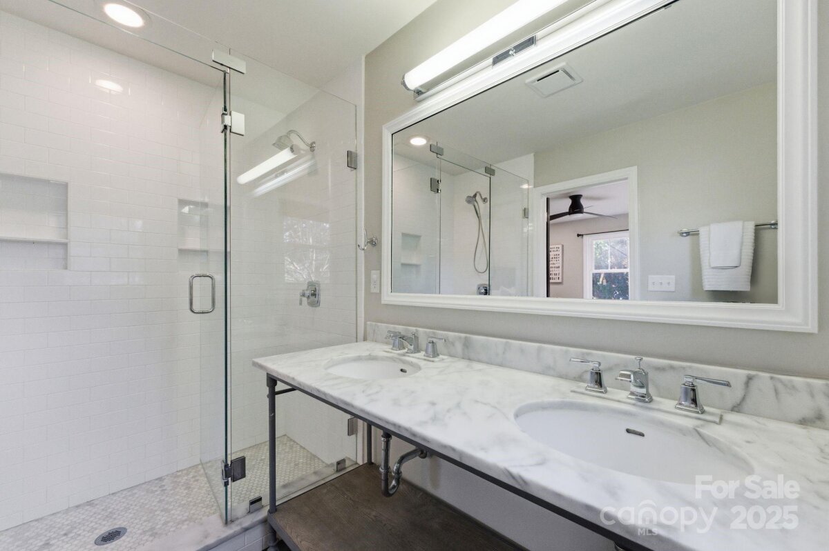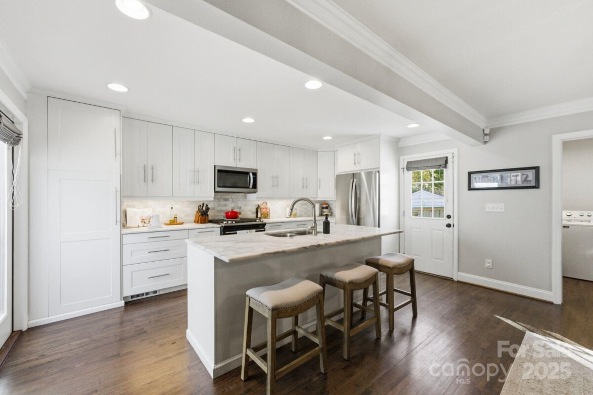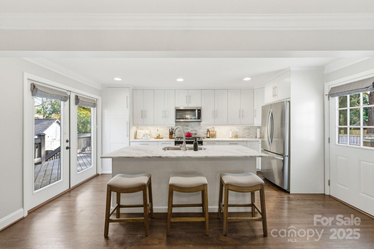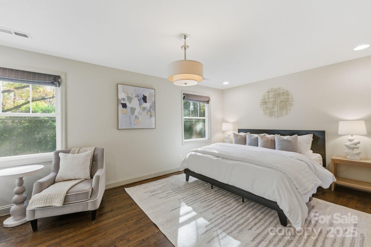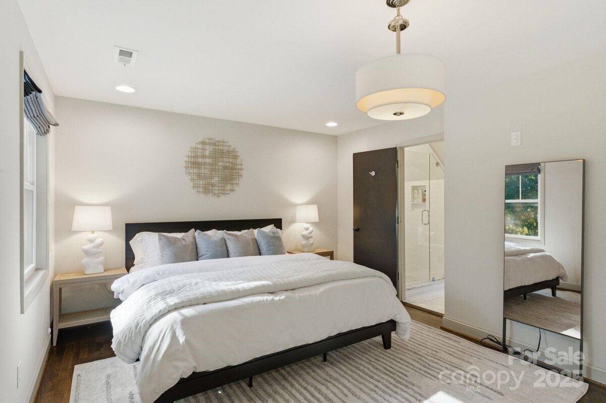 Welcome to 4419 Longwood Drive—an exceptional opportunity to own a 4-bedroom, 3-bath home in highly sought-after Madison Park, just a half mile from Park Road Shops and Montford. Step inside to an inviting open-concept layout with effortless flow between the living room, dining area, and chef’s kitchen, creating the perfect setting for both everyday living and entertaining. The gourmet kitchen features crisp white cabinetry, beautiful countertops, stainless steel appliances, a gas range, and a spacious walk-in pantry—a true standout for home cooks and hosts alike. Three bedrooms, two full baths, and a generous laundry area complete the main level, all enhanced by gleaming hardwoods, detailed moldings, and a cozy fireplace that adds warmth and charm. The home offers dual primary suites—one on the main floor and another upstairs—providing flexible living options for multigenerational living, visiting guests, or long-term comfort. The upstairs bonus room serves as an ideal flex space for a playroom, media room, home gym, or office. Outside, a detached two-car garage includes a sizable finished area thoughtfully converted into a home office. Enjoy a large, flat .3-acre yard with a fire pit area, spacious deck, and patio—the perfect setup for entertaining, relaxing, or playtime. Perfectly positioned near major highways, the Light Rail, Uptown, South End, and Charlotte Douglas International Airport, this home offers unbeatable convenience and connectivity. A rare find in one of Charlotte’s most desirable neighborhoods—this home truly checks every box for modern, move-in-ready city living.