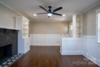 Charming Modern Bungalow Near Uptown & South End Beautifully updated 2-bed, 1-bath home just 10 minutes from Uptown and South End, close to Enderly Park and Wesley Heights. Enjoy newly refinished original hardwoods, bright open layout, and all-new lighting/hardware. The updated kitchen has modern cabinets, stylish backsplash, granite counters, and brand-new stainless steel appliances. Cozy living room with working fireplace, spacious bedrooms with custom built-ins, and a refreshed bathroom with new vanity. Mudroom includes washer/dryer connections. Step onto the new deck overlooking a shaded, fully fenced backyard—great for relaxing or entertaining. Exterior features fresh paint, low-maintenance yard, and front/rear Ring cameras. Additional perks: large attic for storage, newer windows, HVAC, siding, and shingles. Quiet, friendly neighborhood.