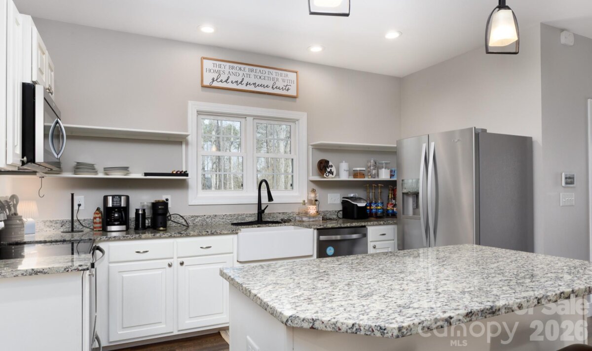 COUNTRY LIVING WITH MODERN COMFORT! LIKE NEW! NO HOA! Experience the perfect blend of privacy, charm, and convenience in this beautifully maintained, like-new 2019 home on over 1.5 acres and just minutes from historic downtown York. Nestled among mature trees with a peaceful creek and natural surroundings, this property offers a serene, mountain-like setting with room to breathe. Relax on the expansive full-width front porch and take in the sights and sounds of nature, or enjoy your morning coffee from the private balcony off the spacious primary suite. Inside, you’ll find an open, light-filled floor plan with durable, stylish flooring throughout—no carpet anywhere. The kitchen is designed for both everyday living and entertaining, featuring granite countertops, farmhouse sink, a large center island, and an oversized walk-in pantry. The primary suite overlooks the backyard and includes two walk-in closets, a private water closet, and convenient access to a large pull-down attic for additional storage. The full basement is already plumbed for a bathroom and offers endless potential—possibly a second living space, guest quarters, or multi-generational living.The expansive drive-under garage provides exceptional functionality, with ample space to accommodate a full-size truck, ATVs, lawn equipment, and even a workshop setup. With neutral finishes, thoughtful design, and meticulous care throughout, this move-in ready home delivers the feel of new construction without the wait—all in a peaceful, no-HOA setting.