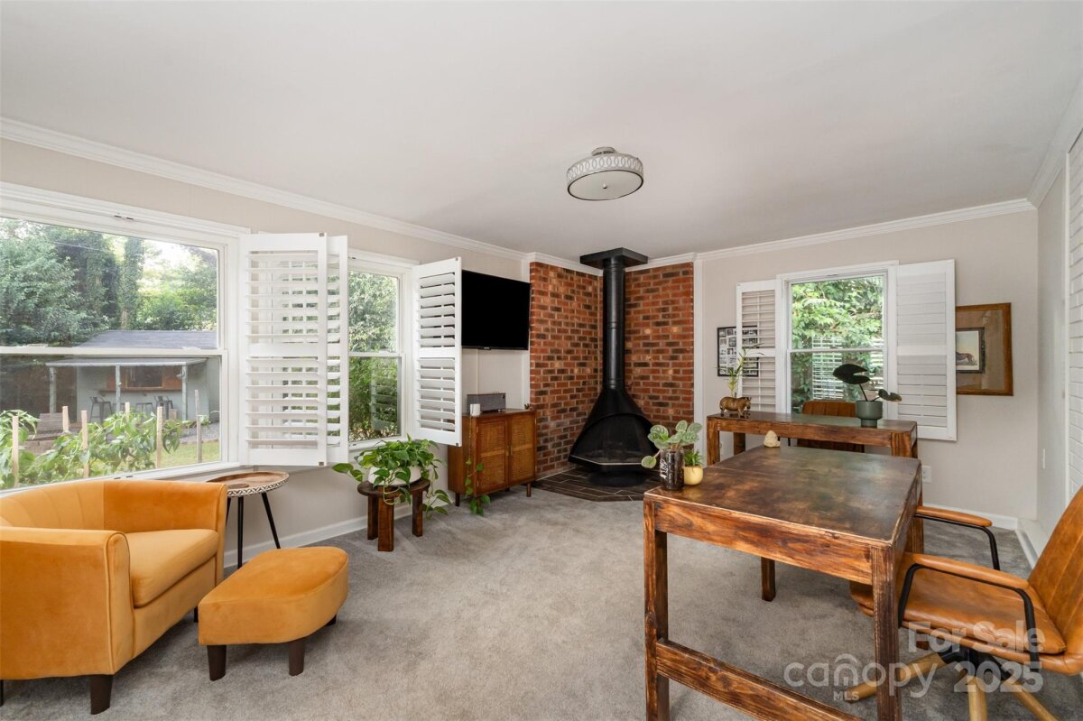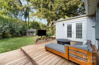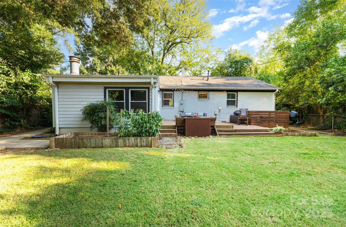 Price reduced-Great opportunity to live in South Charlotte! Beautifully updated 3-bedroom ranch in the sought-after Collingwood neighborhood near Collins Park! This home showcases fresh interior paint, updated bathroom fixtures, plantation shutters throughout, newer kitchen appliances, and two living spaces including a formal living room in the front of the home and a den with fireplace in the back. Outside you'll enjoy a spacious patio, fenced backyard with new privacy fence, fire pit and a shed thoughtfully converted into a stylish bar and entertaining space with electricity. There is a 2nd shed for extra storage and a side storage room attached to the home. Additional highlights include a newer HVAC (2021), fully updated electrical system and no HOA restrictions. Professional foundation stabilization completed in 2024 with transferable warranty. Ideally located just one block from Collins Park with tennis courts, playground, walking track, outdoor fitness equipment, and pavilion. Enjoy the convenience of being minutes from Uptown, South End, LoSo, Dilworth, Montford, and Park Road Shopping Center!