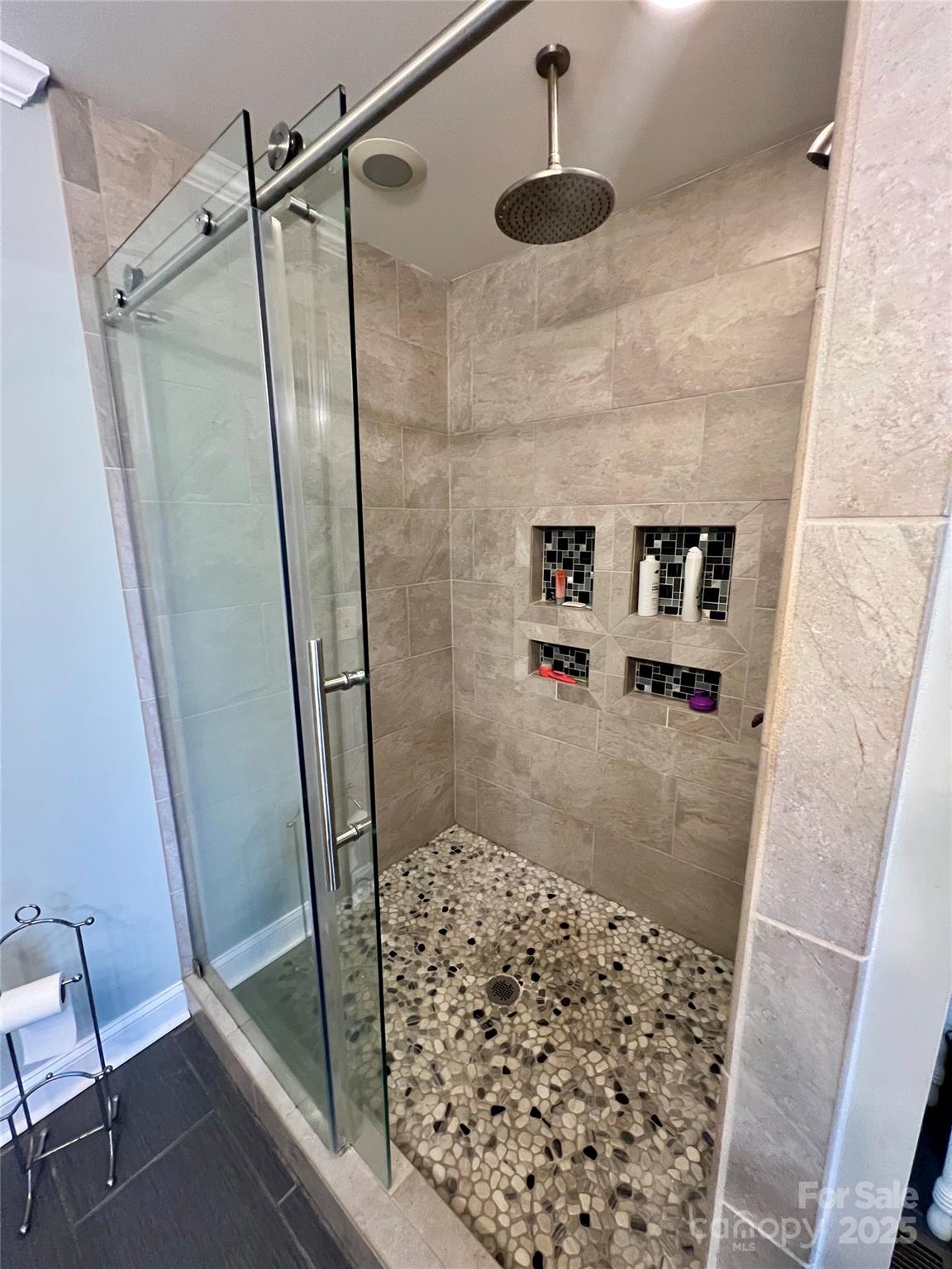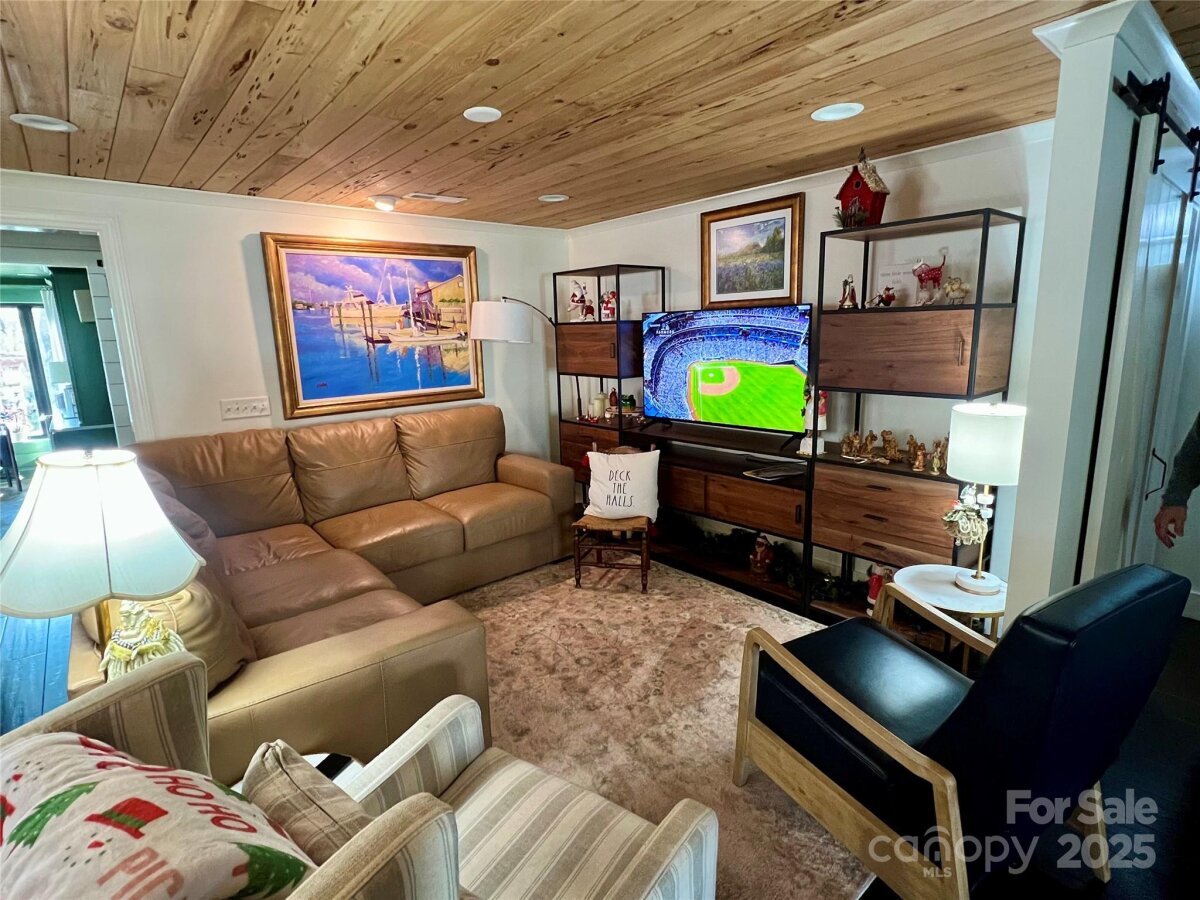 Beautifully renovated Forest Hills Bungalow with tons of character in charm. Exterior is cement board siding for low maintenance and replacement windows. This home features several great outdoor and entertaining spaces from the covered front porch, stone paver side patio and winding path which leads to another patio/lounge area. Outdoor shed has been converted into an entertainment area. Rear Yard is Fenced. Inside features - tongue and groove ceilings with recessed lighting. Flexible living space - living, dining areas can be arranged to suit with a huge center island with quartz counter tops and tile backsplash in the kitchen. Laundry room with "barn" style doors. Sunroom has custom built in cabinets with stone floors. Primary bedroom features a fireplace with custom built in cabinet/closets with drawers. Spa experience primary bathroom with soaking tub, dual vanity and expansive shower. Large secondary bedrooms with connecting bathroom - vanity area and private water closet, tub/shower area. Custom front door. This is a must see property! Schedule your showing today.