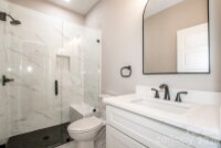 You'll be immediately impressed upon entering this quality built new construction modern farmhouse, complete with all the bells and whistles on nearly an acre – No HOA and room for a pool! This stunning 4-bedroom, 3,672-sq-ft home has an open floor plan, is flooded with natural light and is perfectly situated on a private 0.93-acre wooded lot, on a beautiful picturesque dead-end street, in the highly desirable North Lincoln School District, just minutes from North Lincoln High School. Designed with exceptional construction and attention to detail, this quality-built home blends timeless craftsmanship with elegant modern style and an open, light-filled layout perfect for everyday living and entertaining. Inside, you’ll find crown molding, wainscoting, engineered hardwood floors, oak stair treads with LED lighting and 8-foot interior doors throughout. Every room showcases custom trim work, built-ins, designer lighting and high-end finishes, creating a sense of sophistication and warmth. The chef’s kitchen is the true heart of the home, featuring floor-to-ceiling white soft-close cabinetry with upper glass doors, beautiful tile work, brushed gold fixtures, a white farmhouse sink and an oversized 9x5 shaker-style island with seating and storage. A professional 48-inch range with double oven and a direct vent hood anchors the space, while the adjoining scullery includes additional shaker cabinetry, a sink, dishwasher, tile backsplash and pocket door—providing the perfect hidden prep area for entertaining. Beautiful backsplashes, custom shelving and a spacious dining area complete this impressive culinary space. The family room is warm and inviting, highlighted by a gas fireplace with a gorgeous vertical fluted accent wall, custom wood mantel and a stunning ceiling fan, all overlooking the tranquil wooded backyard. The main-floor primary suite offers a luxurious retreat with a trim accent wall, ceiling fan and spa-like bath featuring a freestanding soaking tub, walk-in tiled shower, dual vanities and a large walk-in closet with custom shelving. A laundry room connects to both the primary suite and hallway, offering a sink, upper and lower cabinetry, and ample storage. An office/flex room with double glass doors and backyard views provides the perfect space for working from home, hobbies or reading. A main-level full bath with a walk-in shower is conveniently located for guests or multi-generational living. Upstairs, you’ll find three spacious bedrooms, a loft with built-in desks and bookcases, bonus room and a second laundry area for added convenience. Two of the bedrooms are connected by a thoughtfully designed Jack-and-Jill bathroom, where each bedroom enjoys its own private vanity and toilet, with a shared tiled tub/shower between. The third upstairs bedroom has access to a beautiful hall full bath with a tiled walk-in shower, ideal for guests. The versatile bonus room provides space for a media room, gym or play area, while the loft is perfect for studying, gaming or relaxing. Outdoor living shines in this home’s spectacular backyard retreat. The covered back patio features a stained wood ceiling with ceiling fans, providing a stylish place to relax or entertain. The expansive, level yard offers ample space for a pool, garden or play area, surrounded by the peaceful privacy of mature trees. Professional landscaping includes seed, straw and shrubbery. Additional highlights include black & white windows, additional side entry door, brushed gold fixtures in the kitchen & primary suite, black fixtures in secondary baths, custom trim work and built-in details throughout that elevate this home’s timeless design. The side load finished garage has been wired for electric vehicle charging. This home offers the perfect blend of luxury, privacy, and convenience. Conveniently located minutes from Hwy 150 & Hwy 16 offering easy access to Denver, Lincolnton, Mooresville, medical, restaurants, golf and the airport.