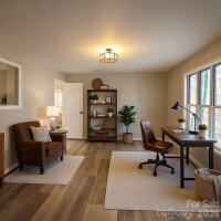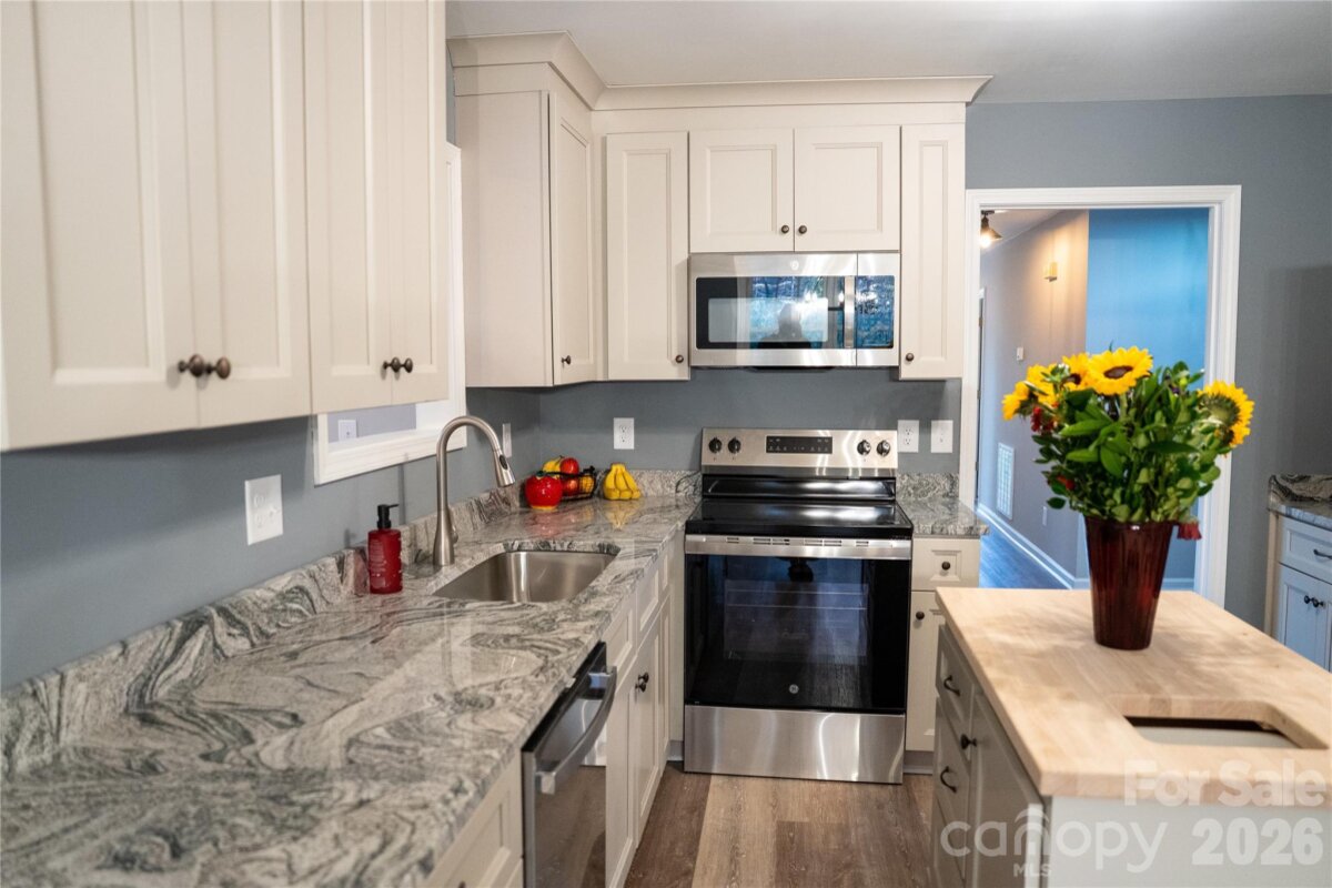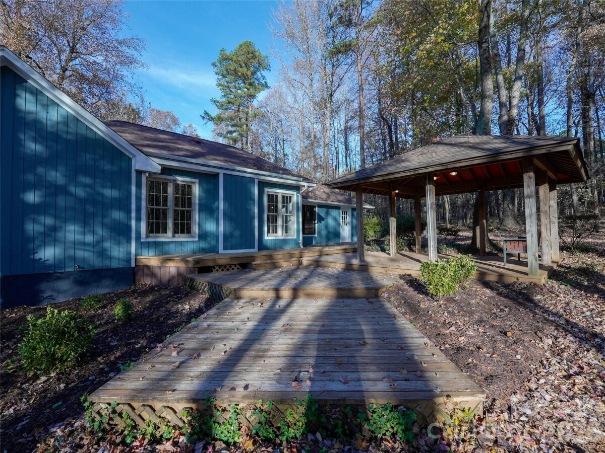 Discover comfort, privacy, and modern updates at 44585 Baldwin Road, a move-in-ready home set on 2.5 wooded acres in New London. Renovated in 2025, this property features a brand new roof (March 2026), new LVP flooring, updated lighting and plumbing fixtures, fresh interior paint, and new outlets and switches throughout. The main living area includes a stone-surround gas log fireplace with a custom walnut mantle and opens to a flexible office or dining space. The updated kitchen offers granite countertops, soft-return dovetail cabinets, all-new GE stainless appliances, a pull-out sprayer sink faucet, and a custom-built movable butcher-block island. A breakfast nook and dining area complete the main level living space. The main-level primary suite includes a walk-in closet and a renovated bath with a French door entrance, freestanding soaking tub, granite vanity, and separate shower. Two additional bedrooms feature large windows and wall closets. The refreshed full bath adds comfort and convenience for family or guests. The upstairs bonus room offers versatile space ideal for a playroom, home office, media area, or future expansion. Outdoors, enjoy a two-level deck, gazebo, and newly painted siding. Additional improvements include a 2023 HVAC system, 2021 water heater, updated plumbing and electrical, a new vapor barrier, and a security camera. Located close to Albemarle, Badin Lake, and Uwharrie National Forest, with convenient access to Charlotte for work, travel, or city amenities.