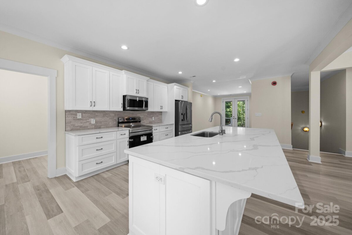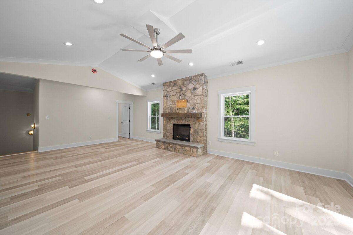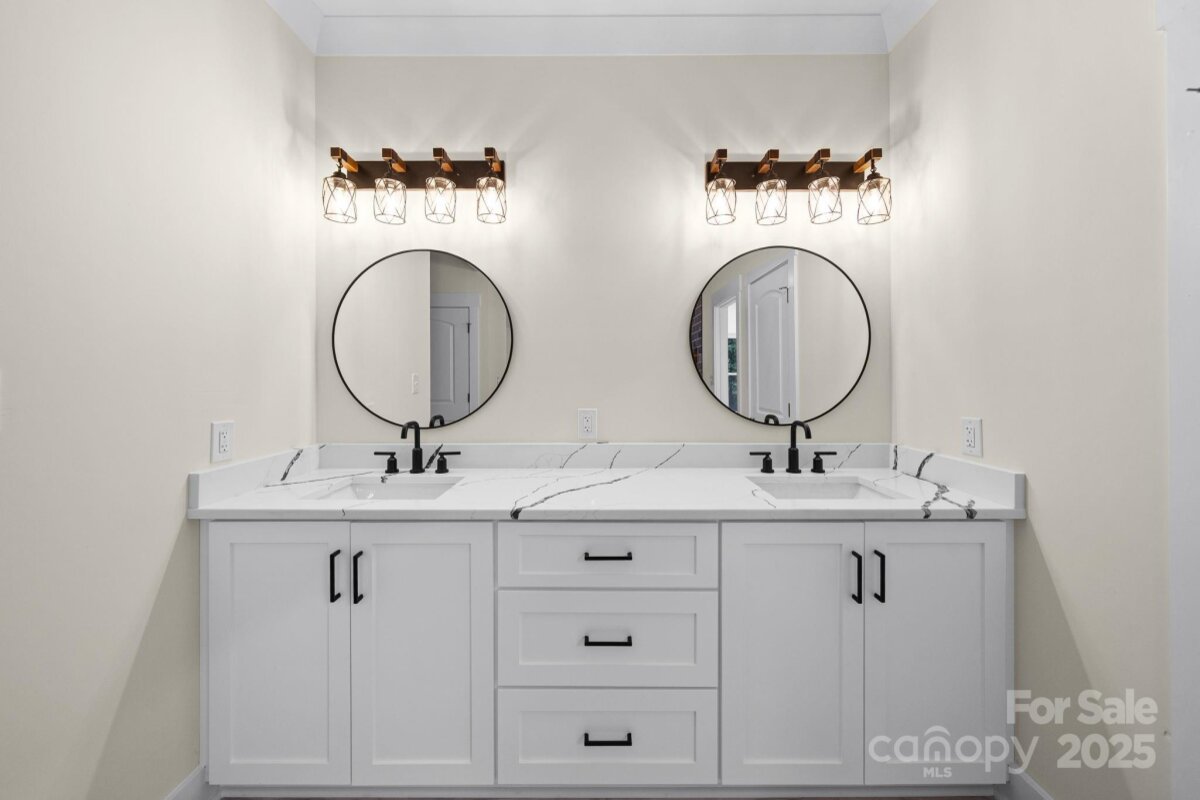 Welcome to a truly remarkable residence offering 4,352 heated square feet of refined living space. Home was completed in October of 2025. Thoughtfully designed with timeless details, this 4-bedroom, 3.5-bathroom estate blends sophistication with comfort. Arrive in style along the tree-lined driveway, leading to the grand entrance and expansive grounds. The primary suite on the main level is a retreat of its own, featuring a bricked walk-in shower, oversized tile, a breathtaking picture window, and an expansive walk-in closet. A second primary suite downstairs ensures flexibility for multigenerational living. The heart of the home is the chef’s kitchen, complete with an oversized quartz island offering built-in storage, custom soft-close cabinetry, tile backsplash, stainless steel appliances, and a convection oven—perfect for both everyday living and entertaining. Soaring spaces begin in the grand foyer, flowing into a living area anchored by a stunning stone fireplace with slate hearth. On the lower level, the basement living room offers generous space for entertaining, complete with a wet bar for hosting gatherings with ease. Custom decks span the full length of the home, extending your living space outdoors. Additional highlights include: Private office on main level, free standing soaking tub in primary bathroom, Finished- insulated 3-car garage, Cove crown molding throughout, Two 50-gallon hot water heaters, and Expansive custom decking for entertaining or quiet retreat. This estate is a showcase of craftsmanship, luxury, and functionality—designed to elevate every aspect of living.