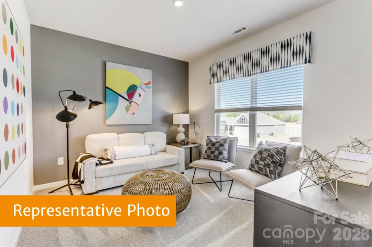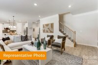 Introducing the McGinnis at Winecoff. This stunning two-story home combines thoughtful design, modern finishes, and a functional layout ideal for today’s lifestyle. Step into the wide, inviting entry and notice the private study, perfect for a home office, or reading area. The main level features open-concept living with 9ft ceilings throughout, creating a bright, airy atmosphere. The spacious family room flows effortlessly into the kitchen and breakfast area, making it perfect for entertaining or everyday family living. The kitchen is a chef’s dream with 42" modern cabinets, quartz countertops, a large island for prep and casual dining, a walk-in pantry, and stainless-steel appliances. Vinyl plank flooring throughout the first floor adds both style and durability. Upstairs, the primary suite offers a large, tiled shower, dual quartz vanity, linen closet, and a generous walk-in closet. Three additional bedrooms, each with its own walk-in closet, provide privacy and ample storage. A versatile loft adds flexible living space, while the conveniently located laundry room makes household tasks simple and efficient. The Winecoff community is ideally located for commuters from I-85, offering easy access to Charlotte, Concord, and Greensboro. With shopping, dining, and local conveniences nearby, this brand-new neighborhood provides a welcoming atmosphere and the perfect balance of accessibility and community living.