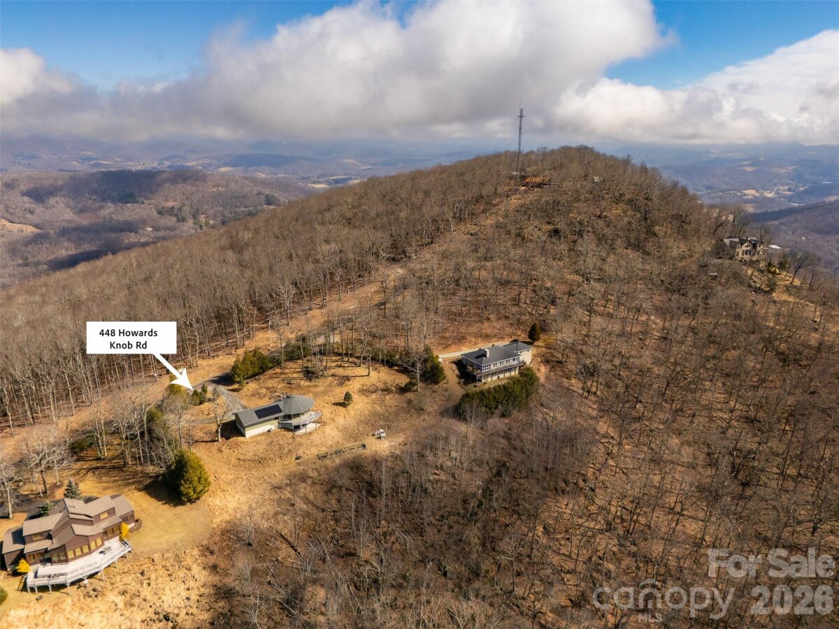 Panoramic. Distinctive. Iconic. 1 of only 8 homes on Howards Knob Rd. Built in 2017 and Designed with the DELTEC signature round construction, the home is engineered for strength and energy efficiency while maximizing natural light and capturing the surrounding landscape from nearly every angle. DELTEC HOMES are known for the engineered wind resistant aerodynamic design and efficient building providing lasting durability and comfort year round. Equipped with an E.V. charger and battery back up load bearing supply...even when the lights go out, they really don't. Peace of Mind. The open-concept floor plan creates a warm and inviting living space ideal for both everyday living and entertaining. Expansive windows and outdoor living areas invite you to enjoy the fresh mountain air, long-range views, and the peaceful setting that makes this region so sought after. Perfectly suited as a full-time residence, private mountain getaway, or income-producing short-term rental, this property offers exceptional versatility. Its unique design and scenic setting make it especially appealing to visitors seeking a memorable mountain stay in one of Western North Carolina’s premier destinations. Conveniently located within reach of popular mountain towns such as Asheville, Blowing Rock, Highlands, and Banner Elk, owners and guests alike can enjoy easy access to renowned restaurants, charming downtowns, outdoor recreation, hiking, waterfalls, skiing, and year-round events that draw visitors to the Blue Ridge Mountains. Whether you're looking for a primary home in the mountains, a weekend retreat, or a property with strong vacation rental potential, this DELTEC home presents an exceptional opportunity to experience the best of Western North Carolina living. All Showings are Realtor Accompanied and through a showing service. Buyers and Buyers Realtor to verify all information herein including square footage, zoning and short term rental eligibility. When you arrive - take in the scenery and let it move you.